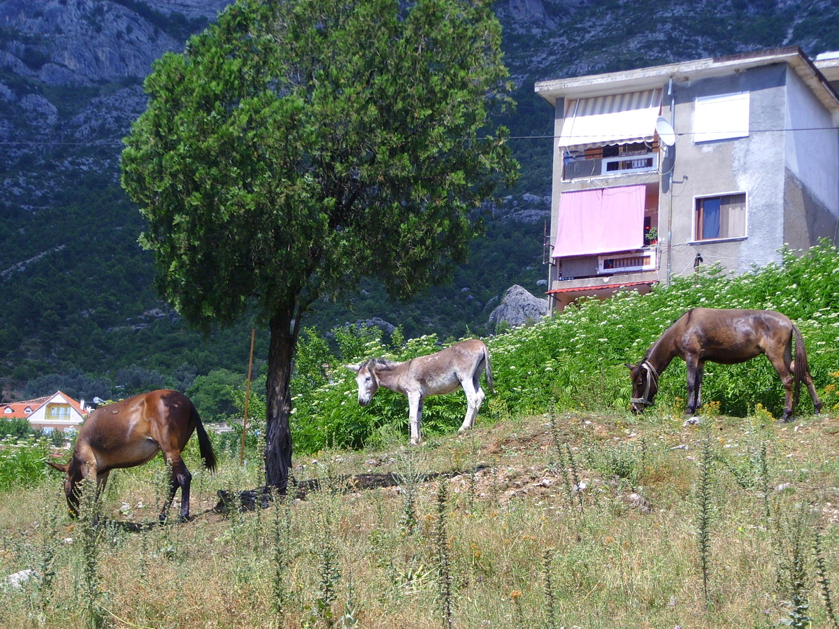 Ja pamiętam Albanię sprzed niespełna 10 lat i było to dla mnie miejsce, gdzie należałoby zsyłać w paczkach tych, którzy marudzą na warunki życia w Polsce. Jak ją zapamiętałam? Niezbyt entuzjastycznie. Może dlatego, że wycieczki po Albani były zawsze długie, żmudne i naprawdę meczące. Dziesiątki kilometrów pokonywane w palącym Słońcu. Szkodra – Kruja – Tirana. Do Tirany prowadziła tak dziurawa droga, że podskakiwało się na niej po sam sufit. Miało to swoje plusy, bo turyści budzili się zanim zaczynałam opowiadać im o stolicy. Po drodze mijaliśmy niezliczone złomowiska samochodów, niedokończone budynki, stacje benzynowe o wdzięcznej nazwie Kastrati, reklamy Vodafone, bunkry i w oddali dymiące od samozapłonów wzgórza. Mijały nas całe stada mercedesów, krajobraz czasem urozmaicały wozy konne i motory z nadliczbową liczbą pasażerów. Zasady ruchu drogowego opierały się na prostym prawie: większy i bardziej zdesperowany ma pierwszeństwo. Przemierzanie tej trasy z serbskimi kierowcami równało się jeszcze słuchaniu jak przez cały czas złorzeczą pod nosem na całą albańską nację. Te dwie narodowości nie pałają do siebie zbytnią miłością. Temperatura też dawała się we znaki, szczególnie w rozgrzanej betonowej Tiranie. Dodatkowo mało kto mówił po angielsku, z bileterem w Kruji dogadywałam się na migi 😉 Najmilszym wspomnieniem tych wycieczek byli celnicy na granicy Sukobin – Murićani.