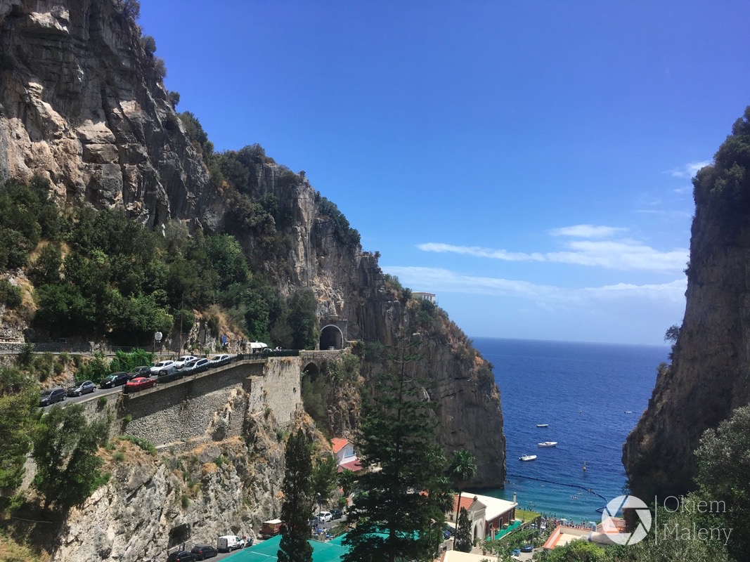 Strada Statale 163 – czyli droga wzdłuż wybrzeża amalfitańskiego. Rozpoczyna się w Positano, a kończy w Salerno – w sumie ok. 50 km. Pomyślicie – krótka trasa, o czym tu pisać? Powiem Wam jedno – jest to trasa, którą zapamiętam na długo. Często przemierzając Azję południowo – wschodnią czułam gęsią skórkę – a to na Filipinach, na drodze wiodącej do Sagady, a to w Birmie przy ułańskiej fantazji kierowców. Jednak droga z Sorrento do Amalfi zaskoczyła mnie totalnie. Po 30 minutach miałam powyżej uszu zapierających dech w piersiach widoków i marzyłam o jednym – aby wreszcie dojechać do tego cholernego Amalfi i wysiąść z autobusu.