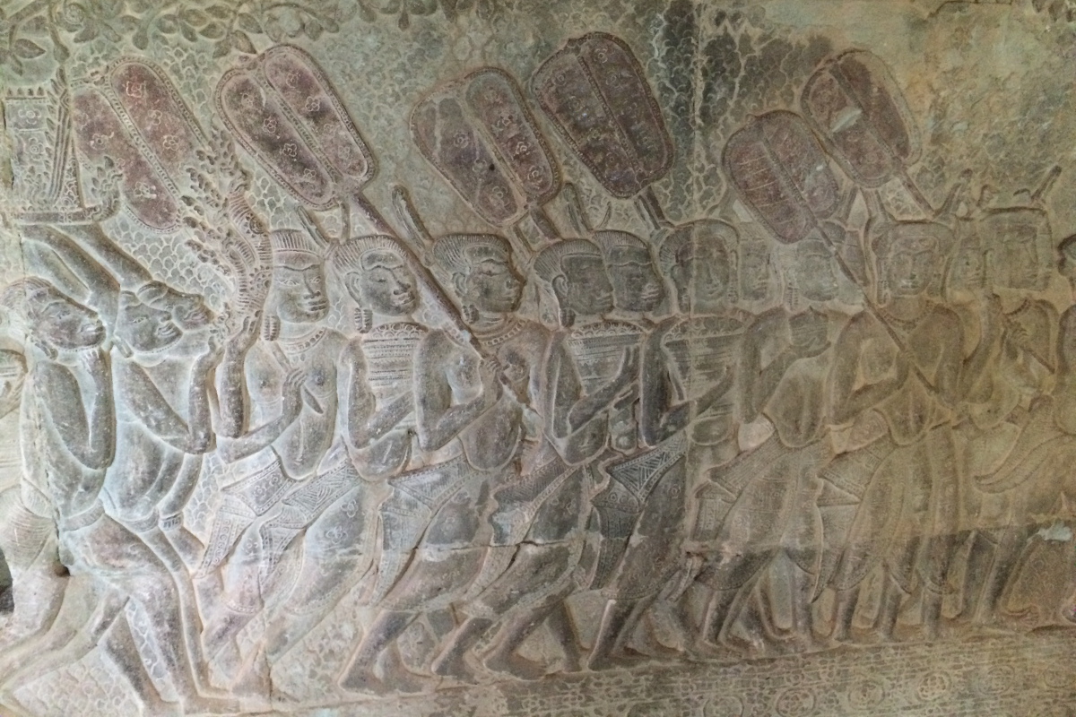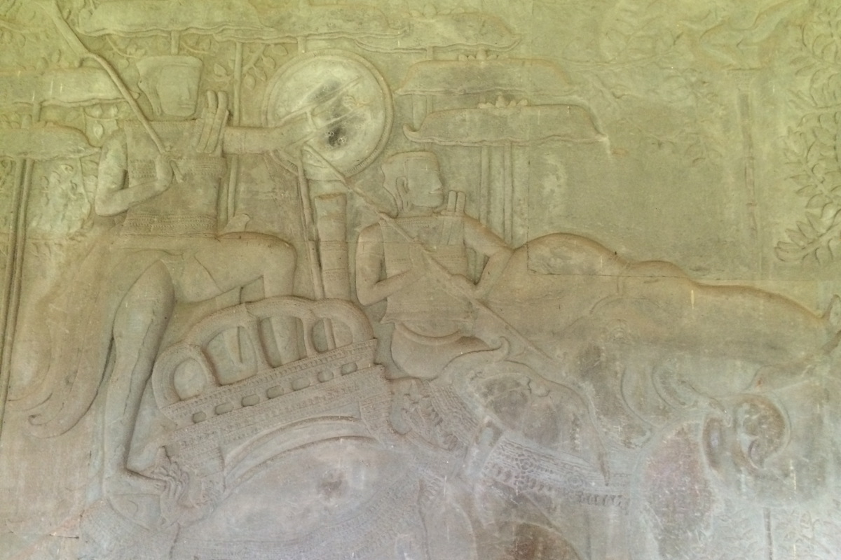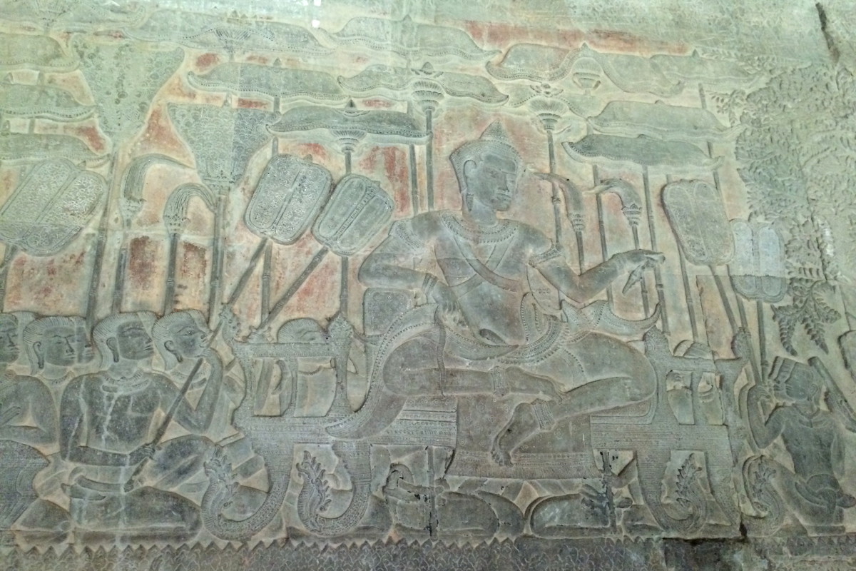Nie udało nam się zwiedzić całej świątyni – na najwyższą kondygnację nie było wstępu dla turystów z powodu ważnego buddyjskiego święta. Świątynia została zbudowana na cześć boga hinduistycznego, ale z czasem, gdy w Kambodży zaczął dominować buddyzm, stała się świątynią buddyjską. Płaskorzeźby rzeczywiście robią ogromne wrażenie. To niewiarygodne z jaką dokładnością oddane są szczegóły. Wielkie bloki piaskowca są z sobą tak dokładnie połączone, że miejsca łączeń na pierwszy rzut oka pozostają niewidoczne. W świątyni znajduje się punkt, który wg. Khmerów stanowił centrum świata.