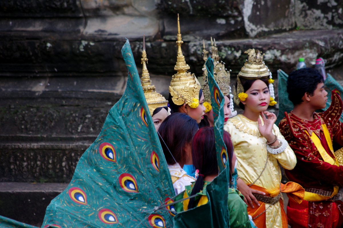 To tyle teorii 😉 Angkor Wat odwiedziłam pod koniec października zeszłego roku. Był to tak naprawdę drugi dzień w Kambodży. Pierwszy dzień to Kambodża podziwiana z okien autobusu na trasie od granicy do Siem Reap. Wieczorem w Siem Reap załapałam się tylko na „Khmerską Kolację”. Coś makabrycznego. Trzymajcie się z dala od takich atrakcji. Wielka sala z bufetem serwującym lokalne, khmerskie jedzenie plus pokaz khmerskich tańców. Jedzenie całkiem ok, choć w Siem Reap znajdziecie lepsze 😉 pokaz też ładny, ale ogólne wrażenie smutne. Po pierwsze ta wielka, ogromna, klimatyzowana sala z rzędami stołów na dzień dobry nie robi najlepszego wrażenia. Po drugie nieciekawe wrażenie zostawili Azjaci, którzy po zjedzeniu tłumnie opuszczali salę w trakcie występów. Z tłumu ludzi, została garstka.