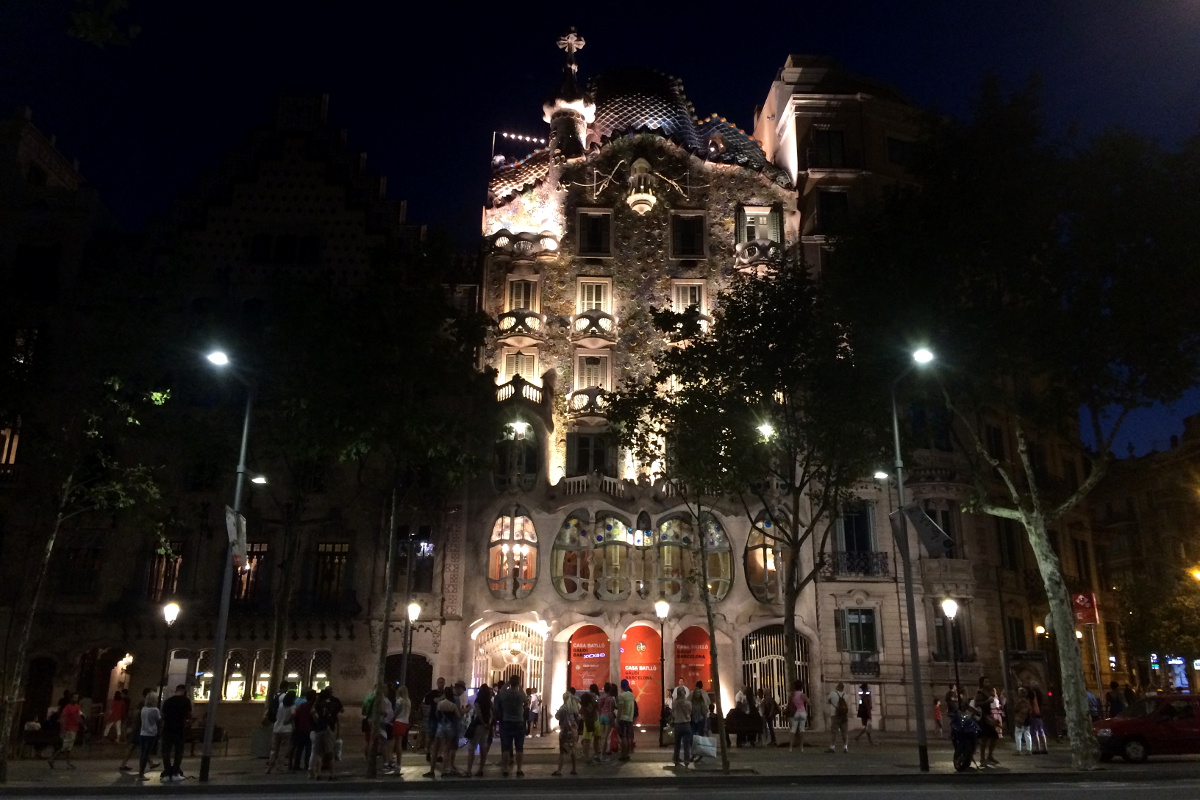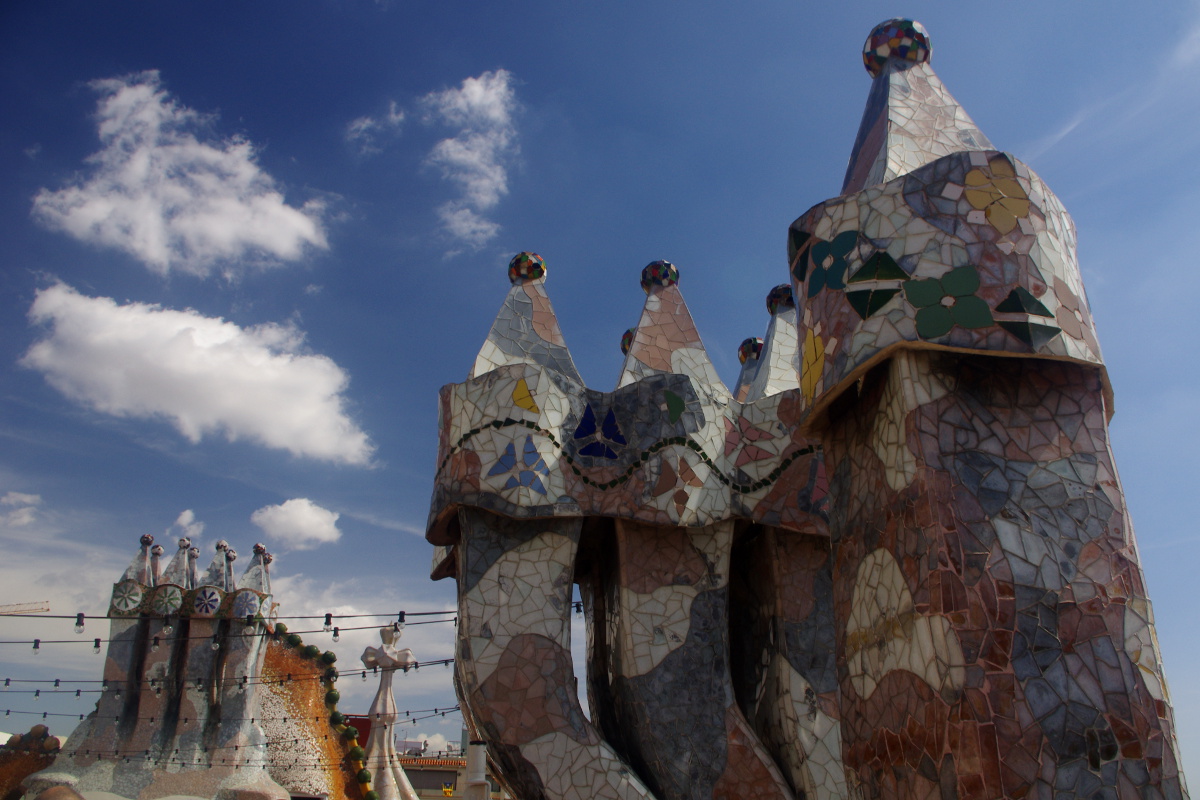 Bardzo ciekawa jest także zmapowana prezentacja fasady budynku, która pokazuje poszczególne fazy modernizacji przez Gaudiego oraz źródła jego inspiracji. Populara nazwa tego budynku to Casa dels Ossos – Dom Kości – gdy przyjrzymy się uważnie pierwszemu piętru budynku oraz balkonom przestaje ona być dla nas zagadkowa. Podobno symbolika architektury Casa Battlo nawiązuje do patrona Katalonii – świętego Jerzego i jego walki ze smokiem. Niesamowitą podróż kończymy w magicznej krainie kominów Gaudiego. Gaudi twierdził, że każda rzecz oprócz tego, że użyteczna powinna być również ładna. Odzwierciedleniem tej filozofii na pewno jest dach Casa Batllo.