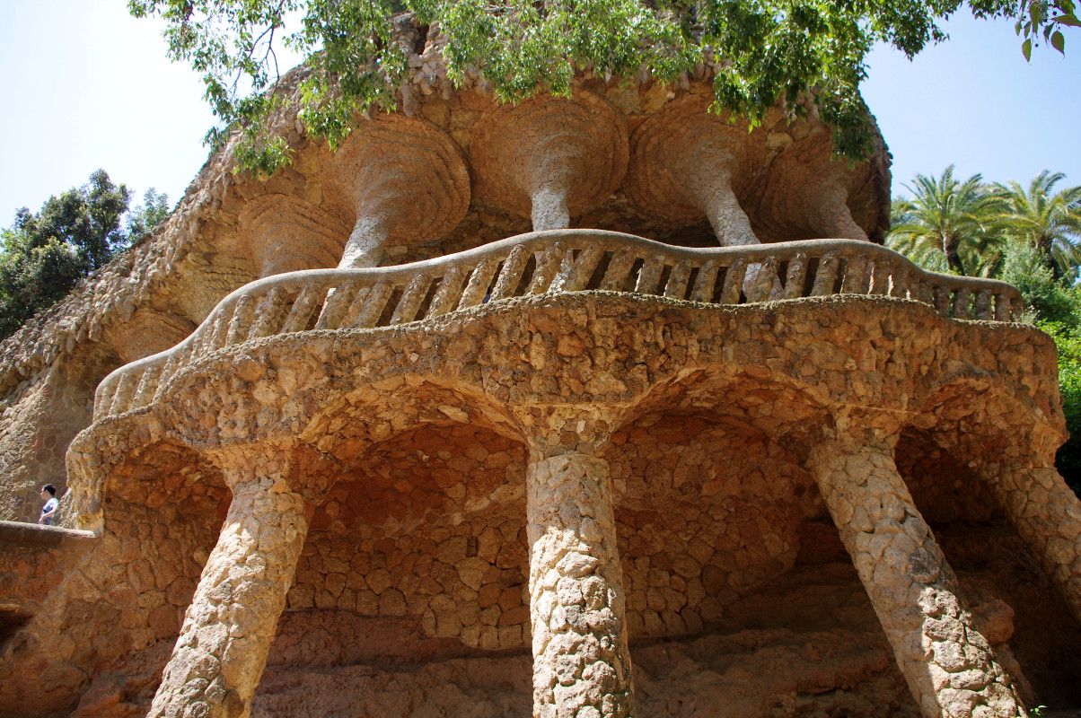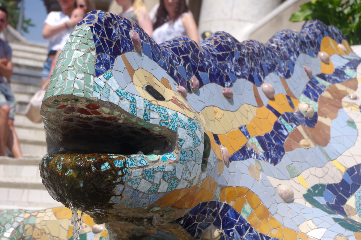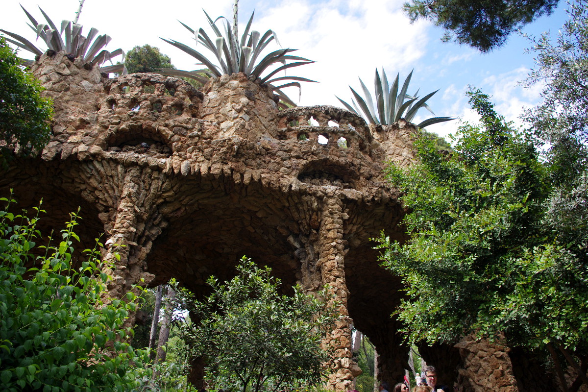 Pierwotnie park miał stanowić osiedle dla zamożnych mieszkańców Barcelony, jednak projekt ten upadł i powstało tylko 5 domów. W jednym z nich mieszkał Gaudi, obecnie znajduje się w nim malutkie muzeum artysty (5,5 euro; po wizytach w Sagradzie itp. można sobie odpuścić). Park Guell to nie tylko sławna falująca ławka i rzeźba jaszczurki. Warto spędzić tam jakiś czas, posiedzieć, posłuchać gitarzystów grających flamenco, poszwendać się alejkami. Im wyżej tym mniej ludzi. Na przełomie maja i czerwca pięknie kwitną opuncje. Park Guell jest podzielony na dwie strefy – płatna, 8 euro – czyli najbardziej reprezentacyjna i znana 🙂 i dalsza, bezpłatna, o drobinę spokojniejsza.