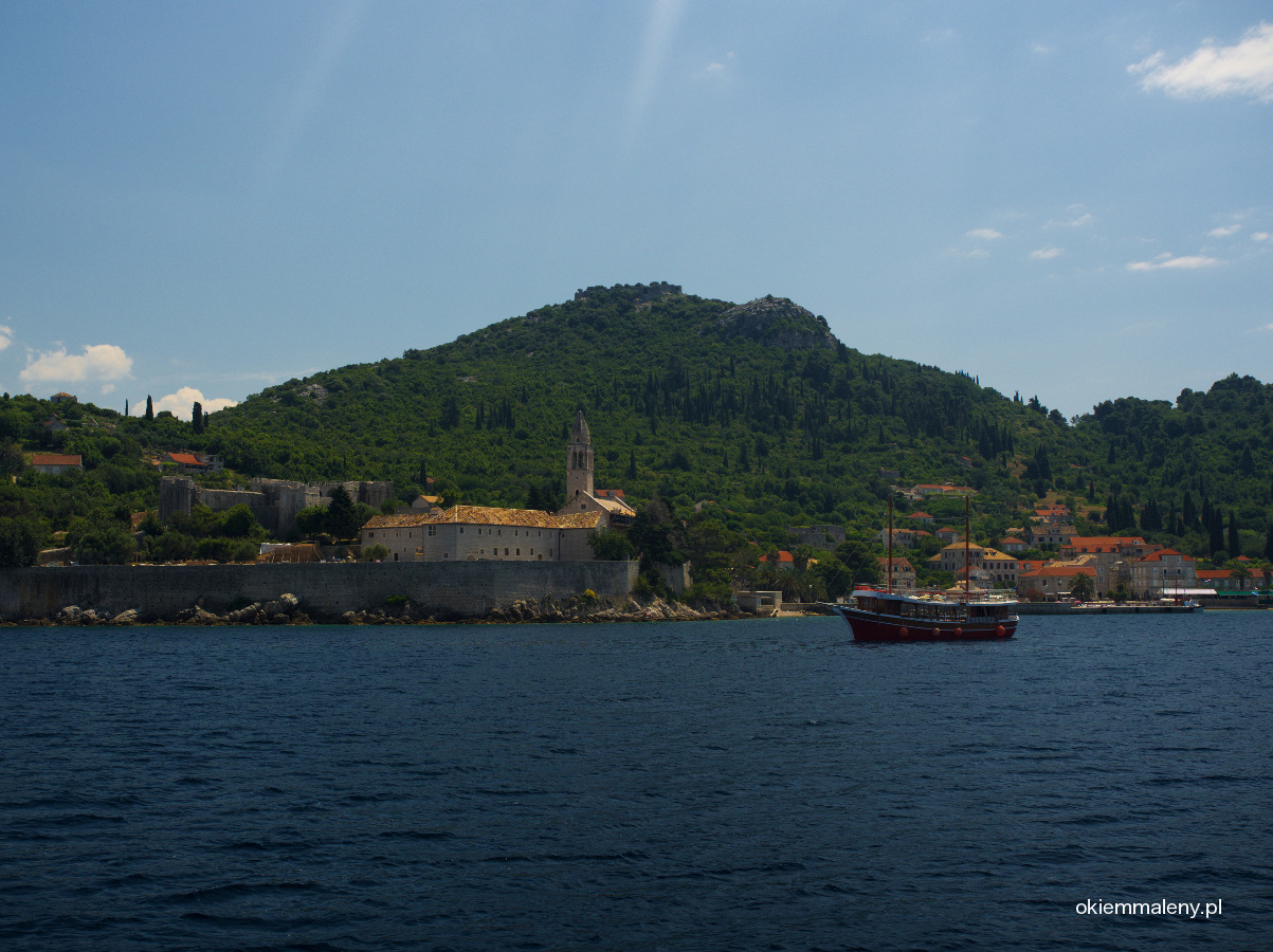 Pierwszy przystanek to wyspa Lopud. Jest na niej około 3,5 godziny czasu wolnego. W sam raz aby obejść wszystkie ciekawsze miejsca na wyspie i znaleźć 20 minut na plażę ;-). Wyspa Lopud słynie z pięknej piaszczystej plaży Šunj. Znajduje się ona po przeciwnej stronie portu. Dla mało entuzjastycznie nastawionych do chodzenia kursują wózki golfowe, które podwożą na plażę, a potem zawożą z powrotem. Ja oczywiście ledwo zdążyłam dotrzeć na plażę. Wzdłuż wybrzeża, az do klasztoru Franciszkanów ciągnie się malownicza promenada nadmorska. Jest na niej pełno knajpek, straganów z pamiątkami, są też wypożyczalnie rowerów.