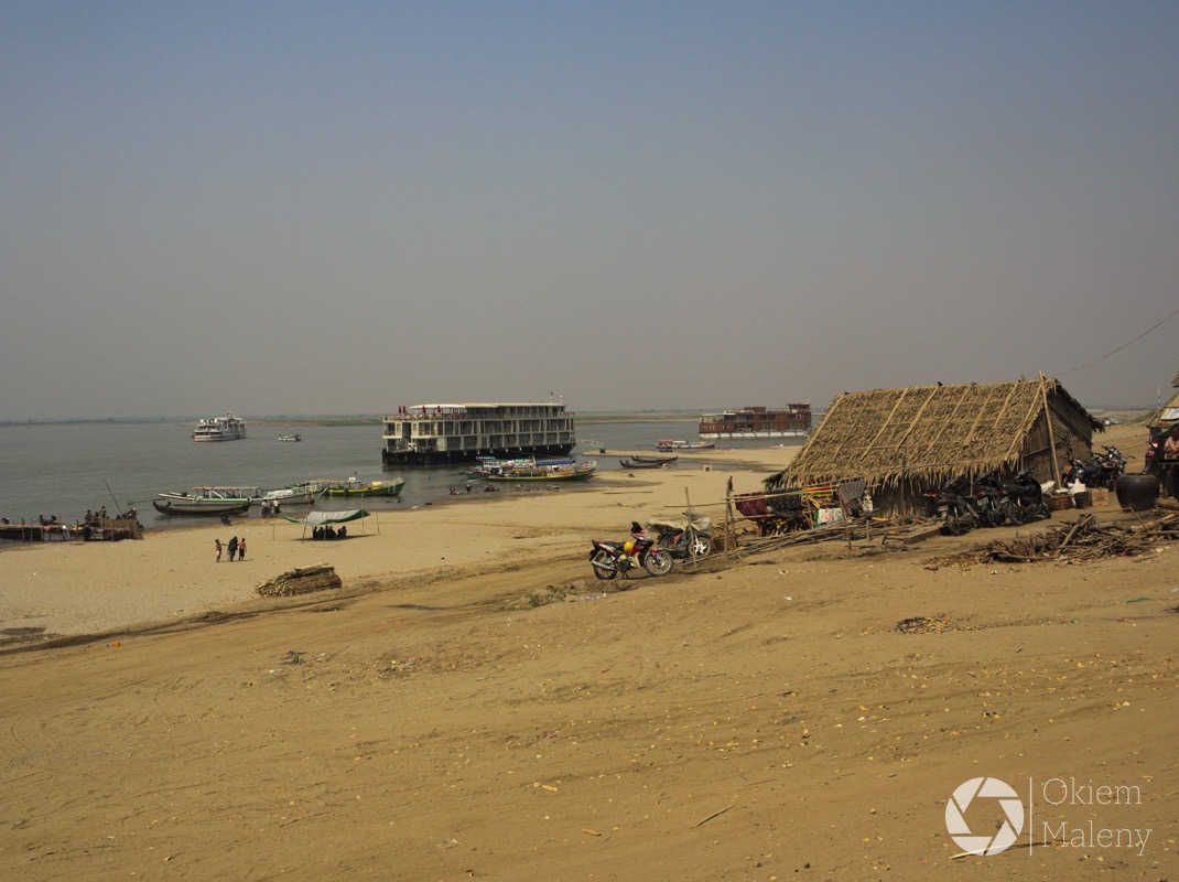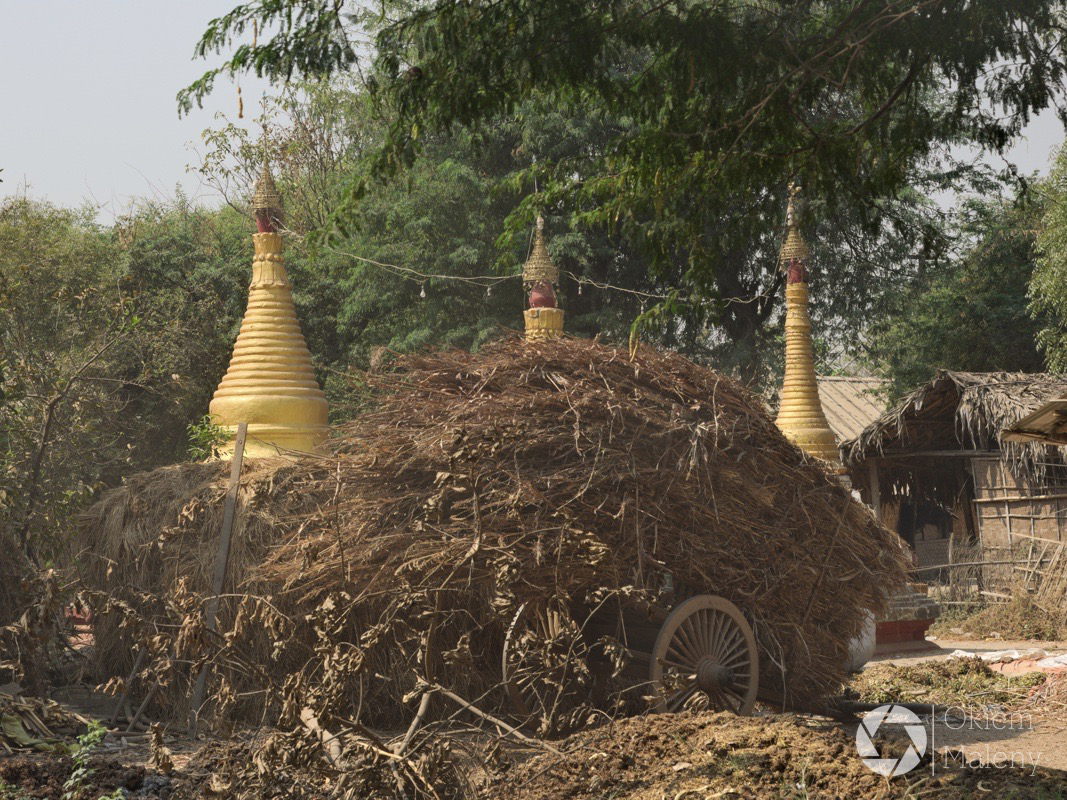 W okolice Irrawady w sumie zajechałam przypadkowo. Byłam zmęczona i zobaczyłam znak river view cafe. Idealne miejsce na odpoczynek, pomyślałam. Jednak nim dojechałam do tego idealnego miejsca zdążyłam jeszcze trafić na wspaniały drewniany klasztor Nat Taung Kyaung, zobaczyć wóz udekorowany na ceremonię Shinbuy, przejechać przez wioskę i zobaczyć stupy za stogiem siana.