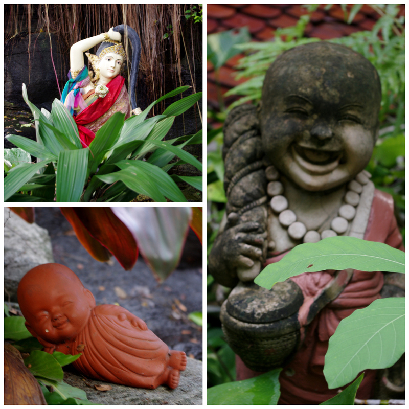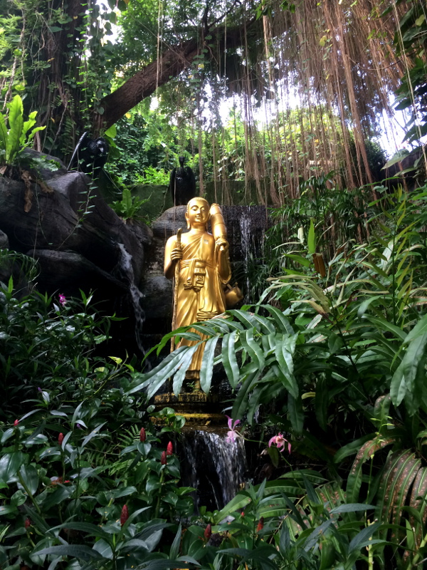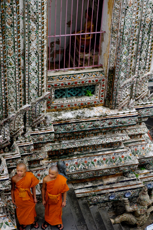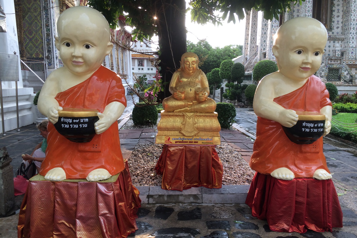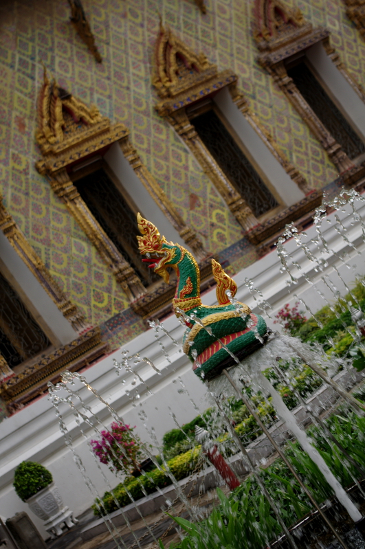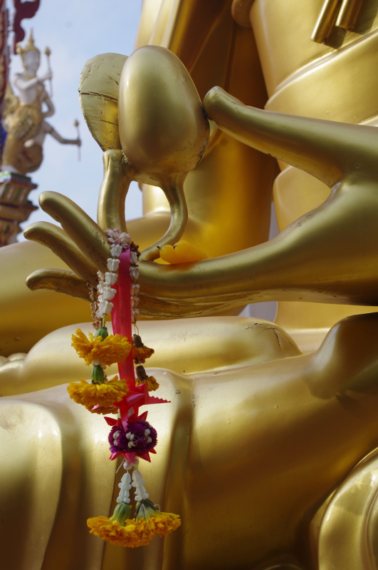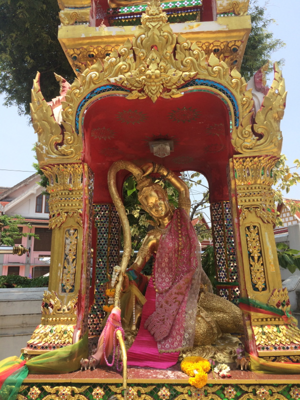 To tyle o świętach miasta, w których miałam szczęście uczestniczyć, a co poza tym? Przede wszystkich przepiękne świątynie. Pierwsza jaką zobaczyłam to mała świątynia na Khao Sanie. Bardzo lubię tam posiedzieć w spokoju i ciszy, choć niestety ta cisza czasem jest tylko nierealnym marzeniem, bo buddyjskie świątynie potrafią być pełne życia, ludzi, zgiełku i z ciszą nie mają nic wspólnego. Białą nitkę, którą otrzymałam z błogosławieństwem od mnicha noszę do tej pory zawiązaną na ręku.