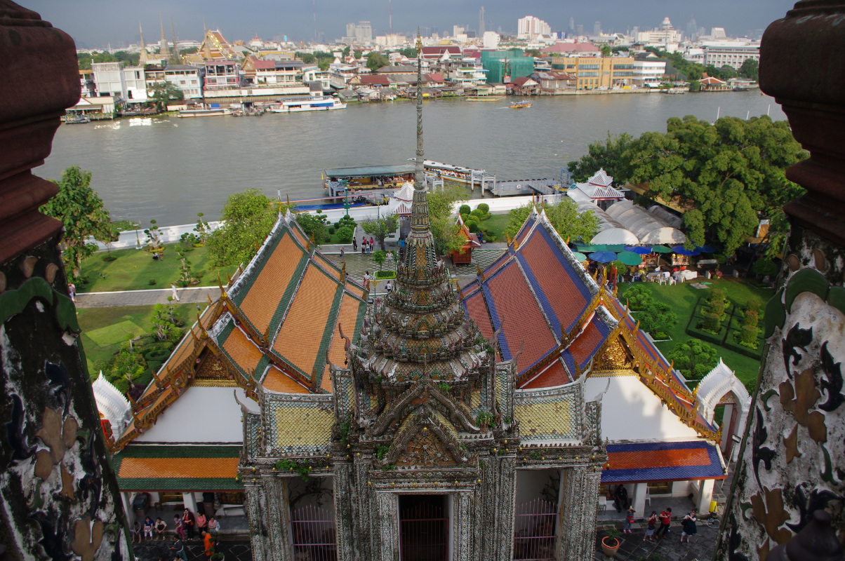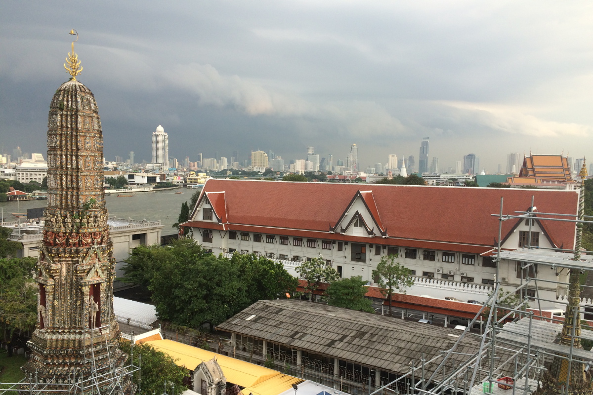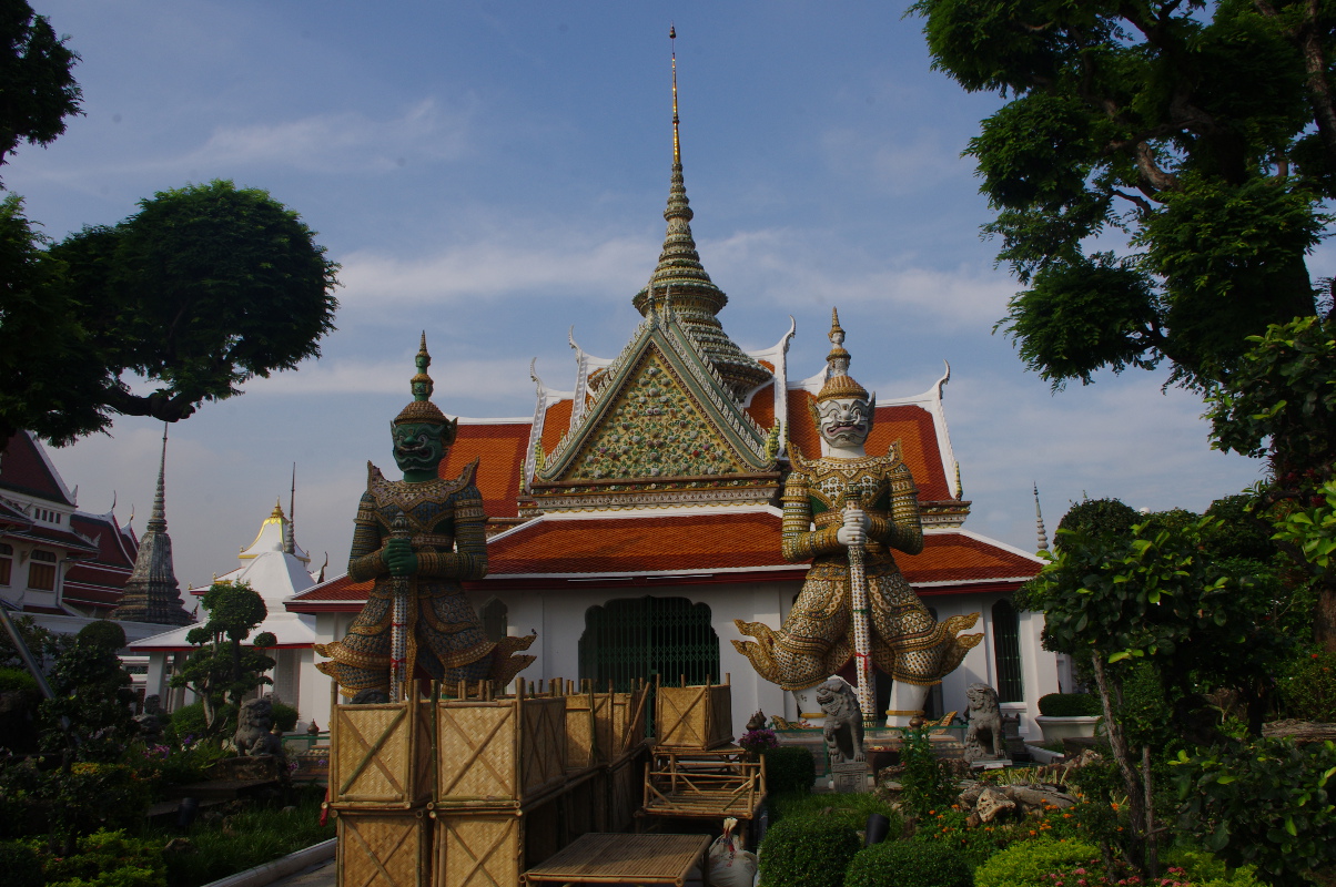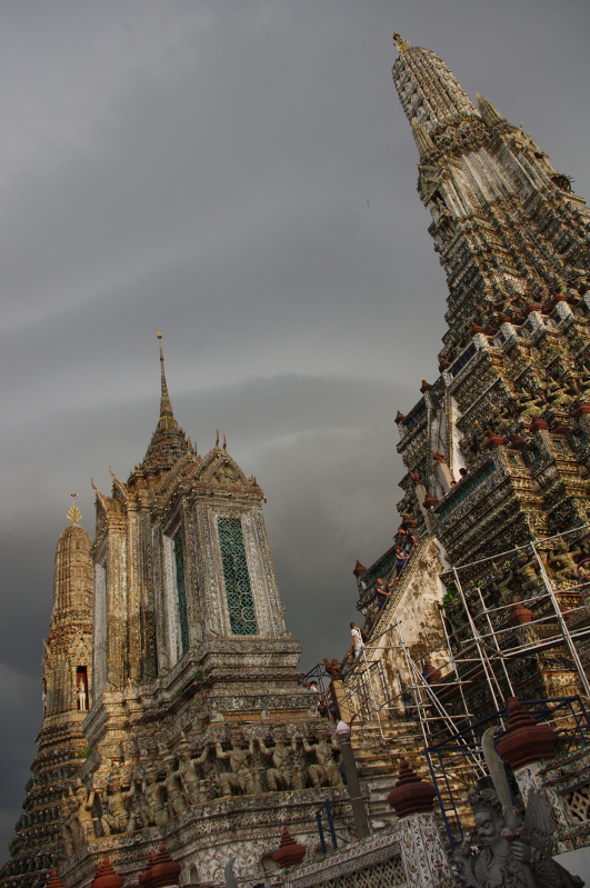 Wat Arun czyli świątynia jutrzenki. Niezwykle piękne, buddyjskie stupy. Świątynia jest jednym z najstarszych zabytków Bangkoku. Tajowie wchodzą za darmo, od obcokrajowców pobierana jest niewielka opłata – około 50 BHT. Odwiedziłam ją dwa razy, raz tuż po wschodzie słońca, podczas mojego spaceru po Bangkoku, na który wyruszyłam około 5 rano. To było niesamowite przeżycie, bo turyści jeszcze smacznie spali i to niezwykle ludne miejsce można było zobaczyć w pełnej okazałości. To niesamowite zobaczyć to miejsce w blasku jutrzenki, kompletnie wyludnione. Polecam 🙂 Drugi raz tego samego dnia, popołudniu, ścigała mnie burza. Gra świateł była cudowna.
