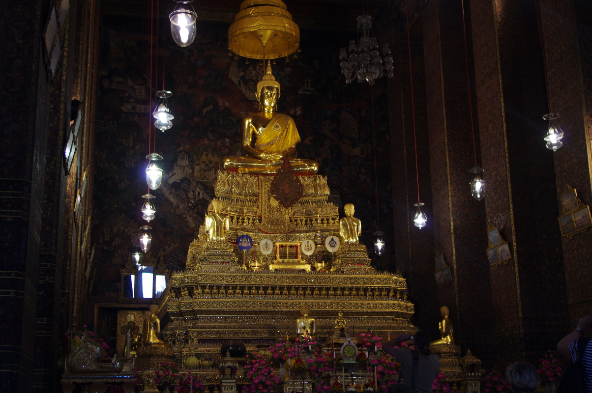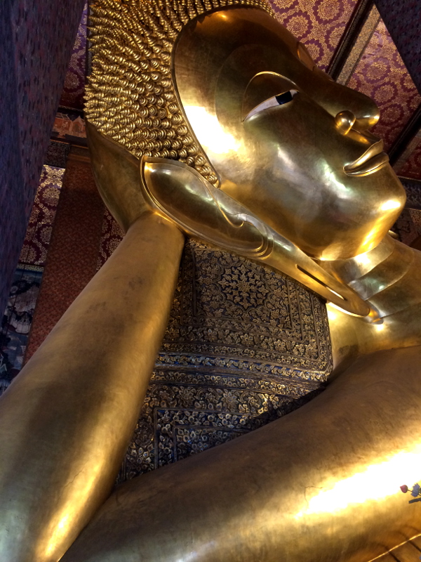 Niedaleko Pałacu Królewskiego mieści się Wat Pho. Świątynia odpoczywającego Buddy, najstarsza bangkocka świątynia. Posąg Buddy ma 15 m wysokości, 46 długości i stópki wykonane z macicy perłowej. W kompleksie świątynnym znajduje się wiele pozłacanych posągów Buddy, płaskorzeźby z tajnikami tajskiego masażu – nie bez przyczyny właśnie to miejsce zwane jest „uniwersytetem tajskiego masażu”