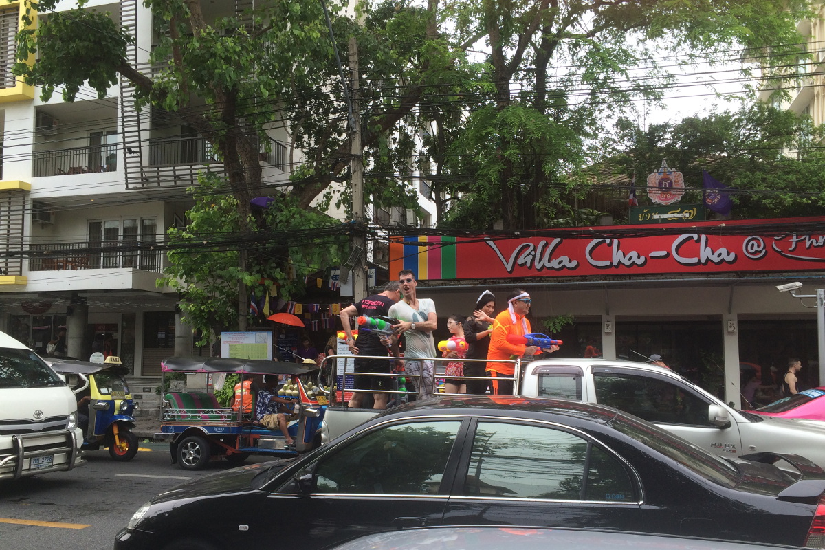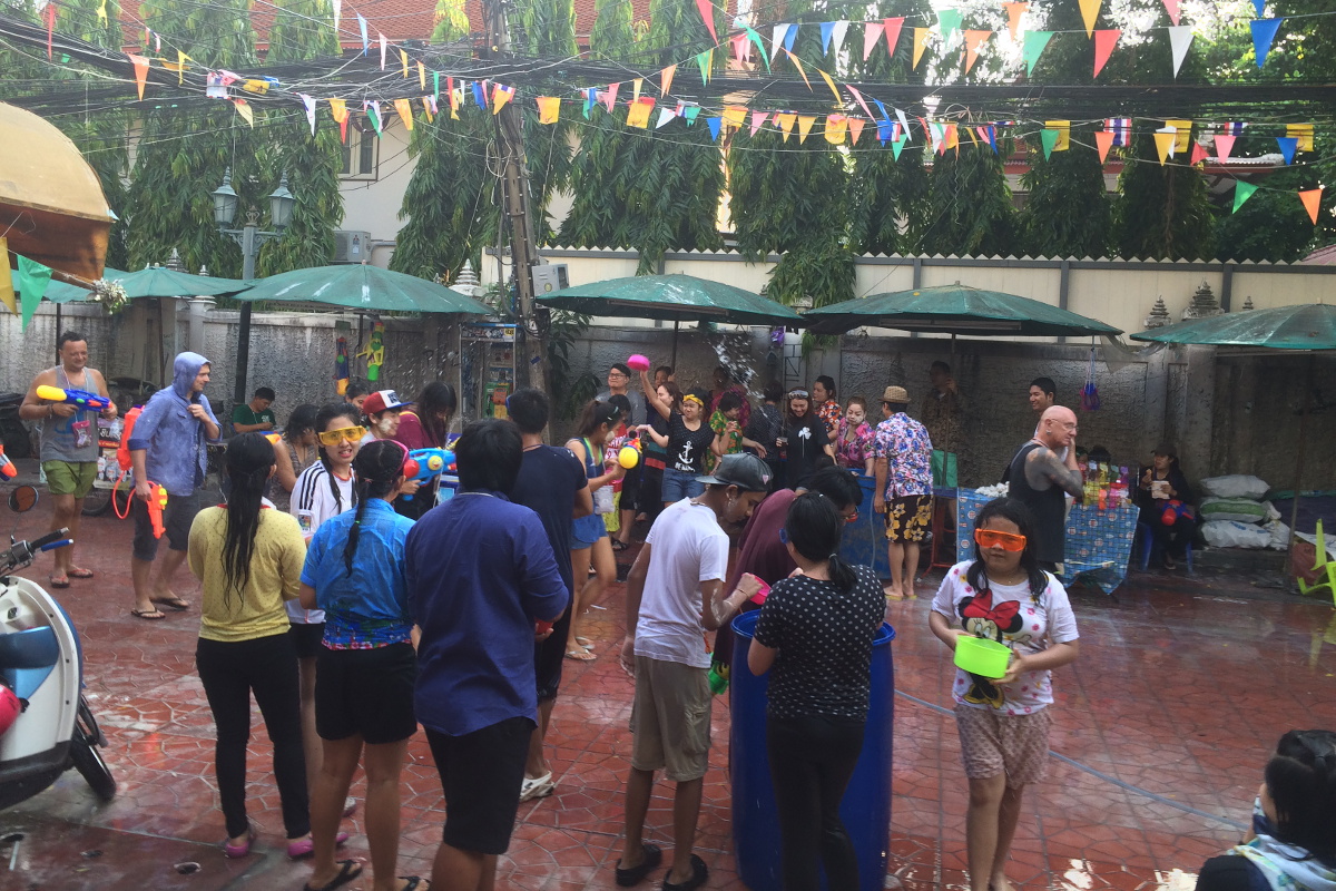 Gdy byłam drugim razem akurat rozpoczynał się tajski Nowy Rok, 13 kwietnia 2015 r., Songkran water festival [więcej o tym pisze tu]. Totalne szaleństwo. I nie liczcie na zmiłowanie i nie oblanie wodą, bo macie paszporty, zakupy, bagaże, wymieniacie pieniądze. Czasem doprowadza to do ciężkiej cholery. Pieniądze musiałam wymieniać wchodząc do budki kantoru, bo nie udało się uniknąć rozbawionego tłumu, co atakował nie bacząc na okoliczności. Gdy jesteście w tym czasie zaopatrzcie się w wodoszczelne saszetki, ochrońcie swoje plecaki, aby zabawa nie skończyła się dla was wielkim stresem. Czy warto zaplanować tak podroż by wziąć udział w tym święcie? Zdecydowanie tak. Nasz smingus-dyngus to tak może w skali 1/100 tajskiego szaleństwa. Oprócz polewanie się wodą – ta lodowata jest droższa, ale i fun większy ;-), możecie kupić wapno i delikatnie smarując twarz napotkanej osoby z uśmiechem złożyć życzenia szczęśliwego nowego roku: sawat di pi mai. Tutaj i tu znajdziecie więcej informacji dotyczących Songkran festival. Niestety z wiadomych powodów nie mam zbyt wielu, a właściwie to nie mam prawie wcale zdjęć z tego dwudniowego szaleństwa.