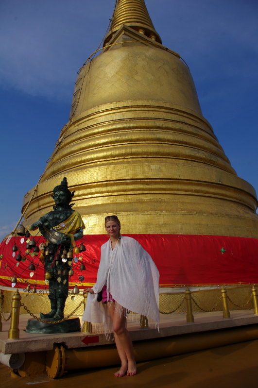 W innej części Bangkoku zlokalizowane jest Złote Wzgórze ze świątynia Wat Saket [świątynia mycia włosów], z której możemy podziwiać przepiękną panoramę Bangkoku. Na szczyt sztucznie usypanej góry wchodzimy po ponad 318 schodach. Na szczycie znajduje się złota chedi. [Chedi – tajski termin oznaczający stupę czyli typ sakralnej buddyjskiej budowli, symbolizującej oświecony stan Buddy, specyficzna konstrukcja czyni ją niezwykle odporną na trzęsienia ziemi]