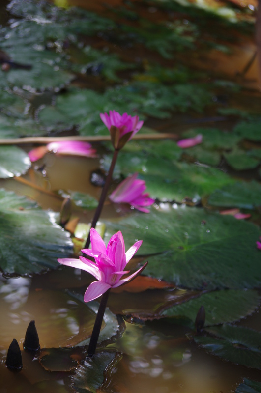 Do świątyni wiodła droga wzdłuż pól ryżowych oraz przepięknych lotosów wyrastających z żółtej wody rzeki.