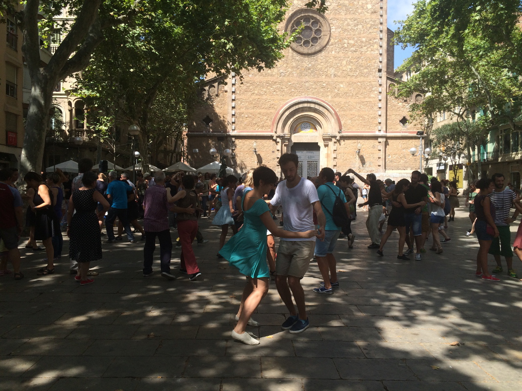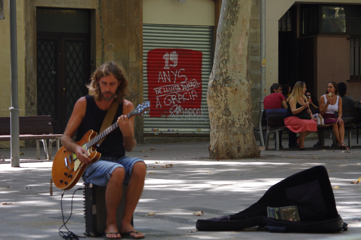 Czasem placyki zamieniają się w sale taneczne. Tak było na placu de la Virreina, który w niedzielne popołudnie zamienił się w swingową arenę. Gdy swing zakończył swoje panowanie na placu zagościły piękne dźwięki gry na gitarze.