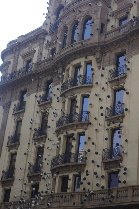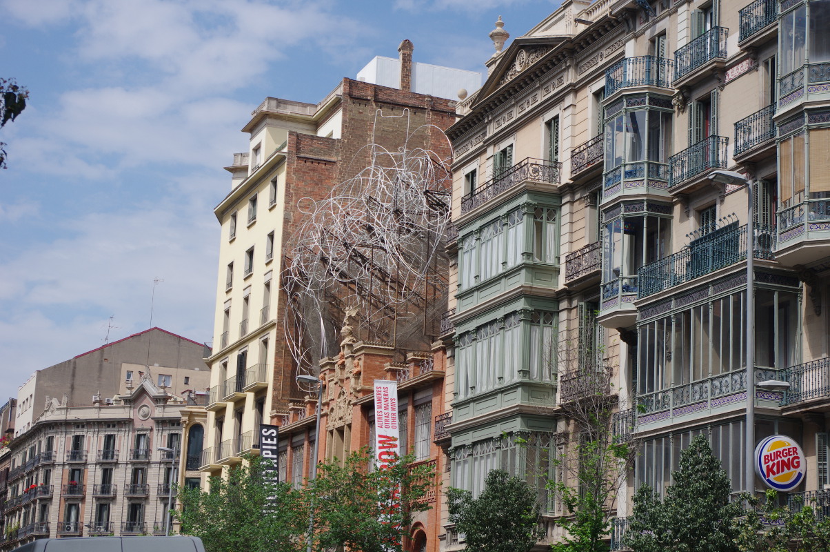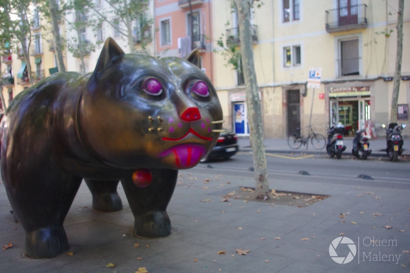 Abstrahując od dzieł ewidentnych – jak budynki Gaudiego, niesamowita architektura Szpitala św. Pawła, piękno katedr, kościołów, muzea i galerie sztuki – na każdym kroku spotykamy małe szczególiki, cream de la cream, wisienki na artystycznym torcie Barcelony. A to piękna fontanna, a to niesamowite graffiti, to płaskorzeźba, a to .. dupa. Ni stąd ni zowąd wielka dupa na środku parku. Nad morzem mieni się złota wielka ryba, w pobliżu muzeum designu znajdują się duże tuby, wystarczy w nie krzyknąć aby na chodniku pojawiły się świetlne węże.