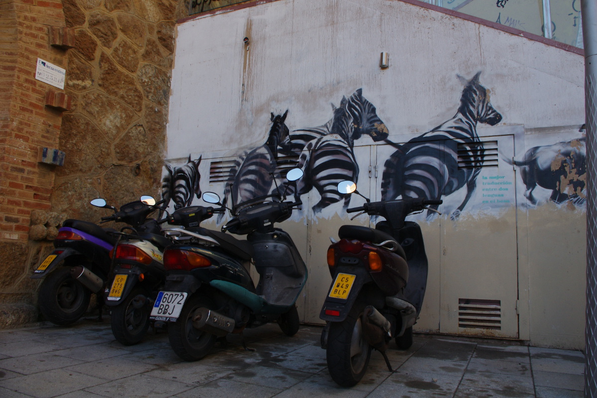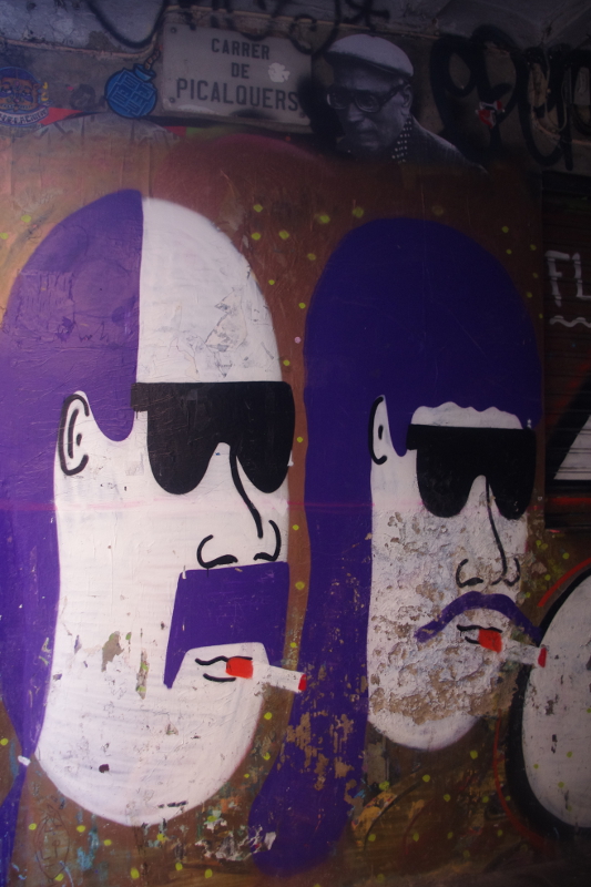 Co jeszcze? Tatuaże i Graffiti. Jedne i drugie przecudnej urody. Jeszcze zapach marihuany wydobywający się z wielu zaułków.  No i skręcane papierosy. Hiszpanie palą i ze względu na koszty palą głównie skręty. Zachodziłam w głowę jak oni są w stanie w czasie marszu skręcić papierosa. Ale a i owszem mogą. Kieszonkowcy to niezbyt chlubne, ale niestety prawdziwe oblicze tego miasta. Trzeba mieć oczy na około głowy. Rowery i skutery to najwygodniejszy środek transportu. Warto oddalić się od głównych tras turystycznych, powłóczyć się, zgubić w plątaninie ulic aby poczuć to miasto. Niesłychanie przyjazne i zadziorne.