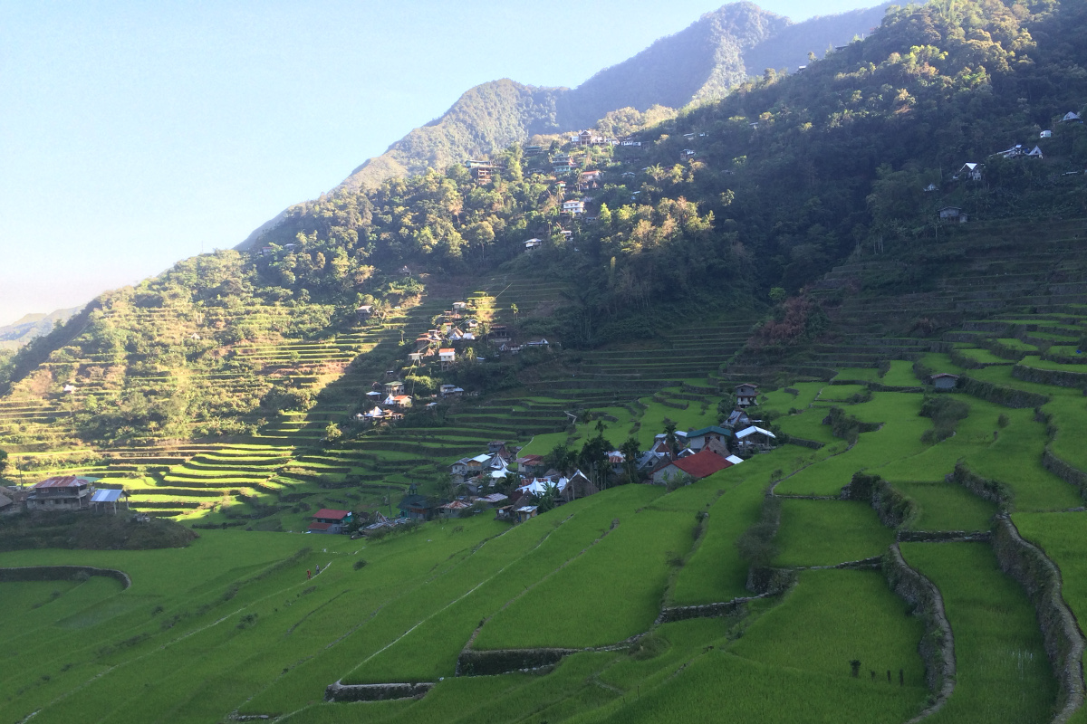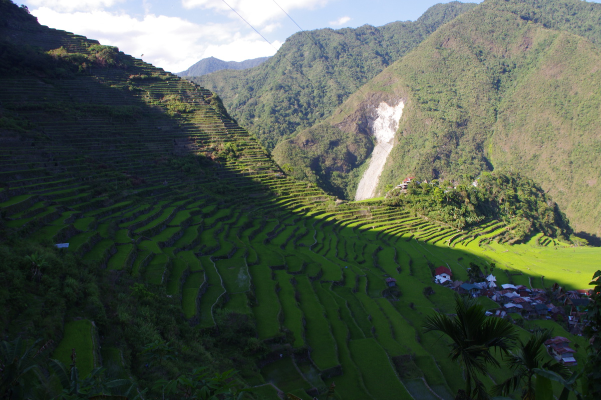 Jeszcze tylko yeepney do Batadu, potem pół godziny marszu, bo droga się kończy i witamy w raju. Tarasy ryżowe robią niesamowite wrażenie, zapierają dech w piersiach. Nic dziwnego, że Filipińczycy uważają je za 8 cud świata oraz, że zostały wpisane na listę dziedzictwa UNESCO. Powstały około 2000 lat temu. Tarasy budowano wzdłuż zbocza gór ograniczając je kamienno – błotnymi ścianami, tak że powstawały tarasowo położone „baseny”, w których uprawiano ryż. Wodę dostarcza się systemem nawadniającym z pobliskich strumieni. Tarasy nie stanowią tylko dziedzictwa „krajobrazowego”. Warta podkreślenia jest współpraca lokalnej społeczności w tworzeniu i utrzymaniu tarasów, zmysł techniczny, znajomość rytmu przyrody, wierzenia i obrzędy związane z tym miejscem. W 2008 roku na listę Arcydzieł Ustnego i Niematerialnego Dziedzictwa Ludzkości UNECO wpisano śpiewy grupy etnicznej Hudhud, zamieszkującej region Ifugao – więcej na ten temat znajdziecie na stronie UNESCO.