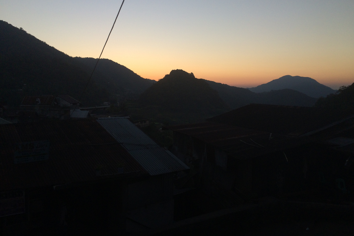 W Batadzie nocowaliśmy w Simon’s View Inn. Pokój składający się z łóżka, stołu, żarówki i okna. I to okno z widokiem na góry warte było wszystkich bogactw świata. Dawno mi tak nie smakowało piwo jak to pite nocą na parapecie, a ciemność rozświetlała tylko pełnia księżyca, gwiazdy i latające świetliki. Do tego byłaby cisza absolutna gdyby nie Francuzi śpiewający do białego rana. 😉