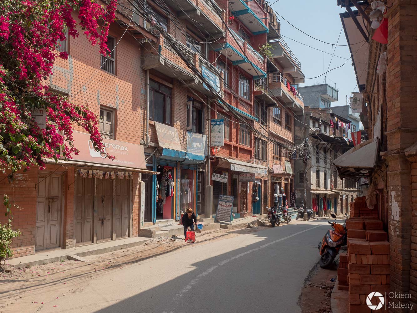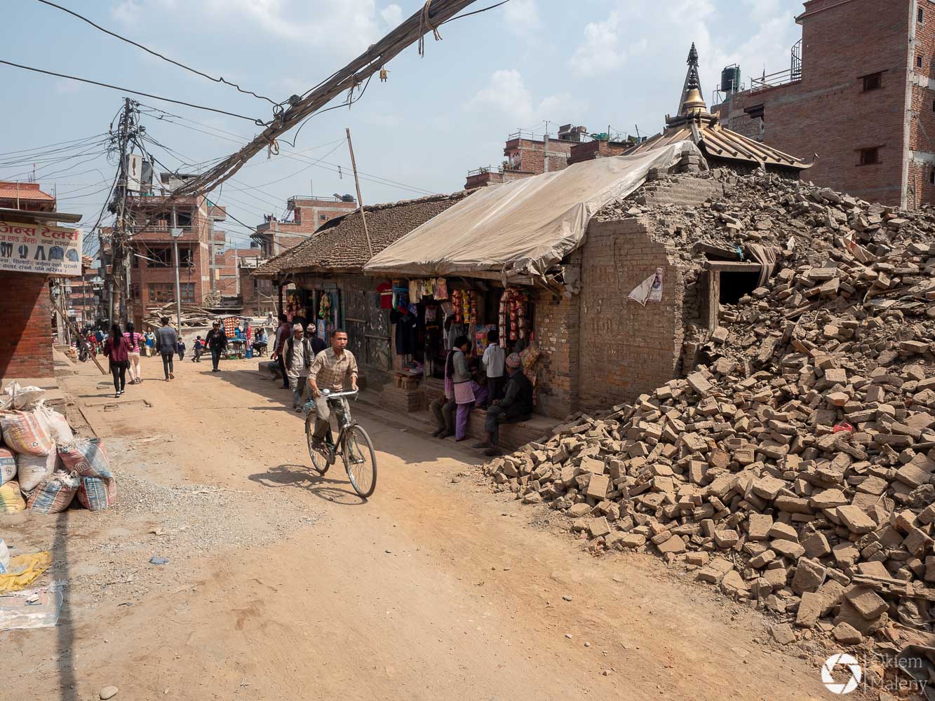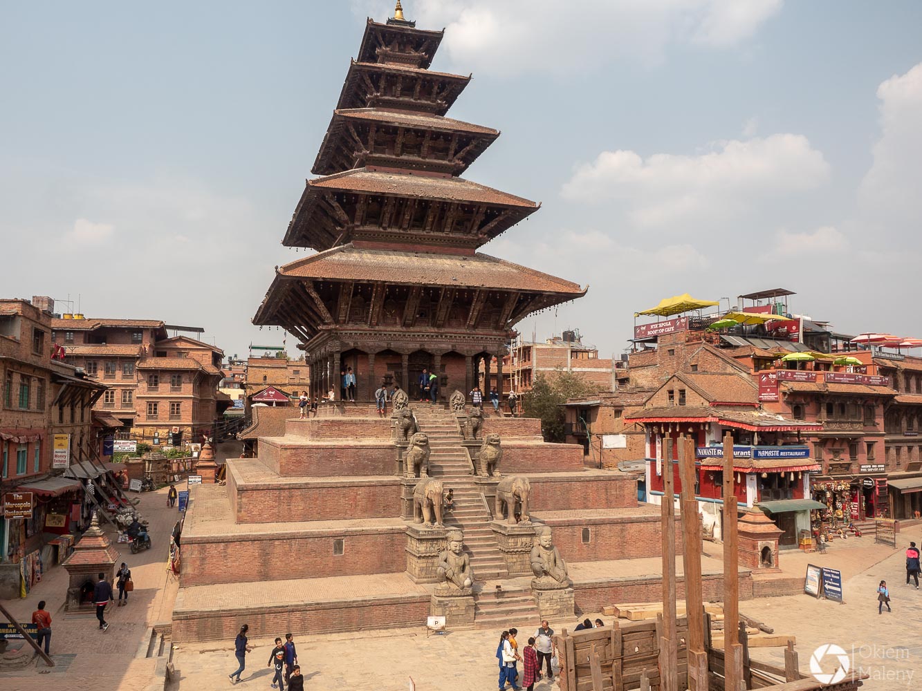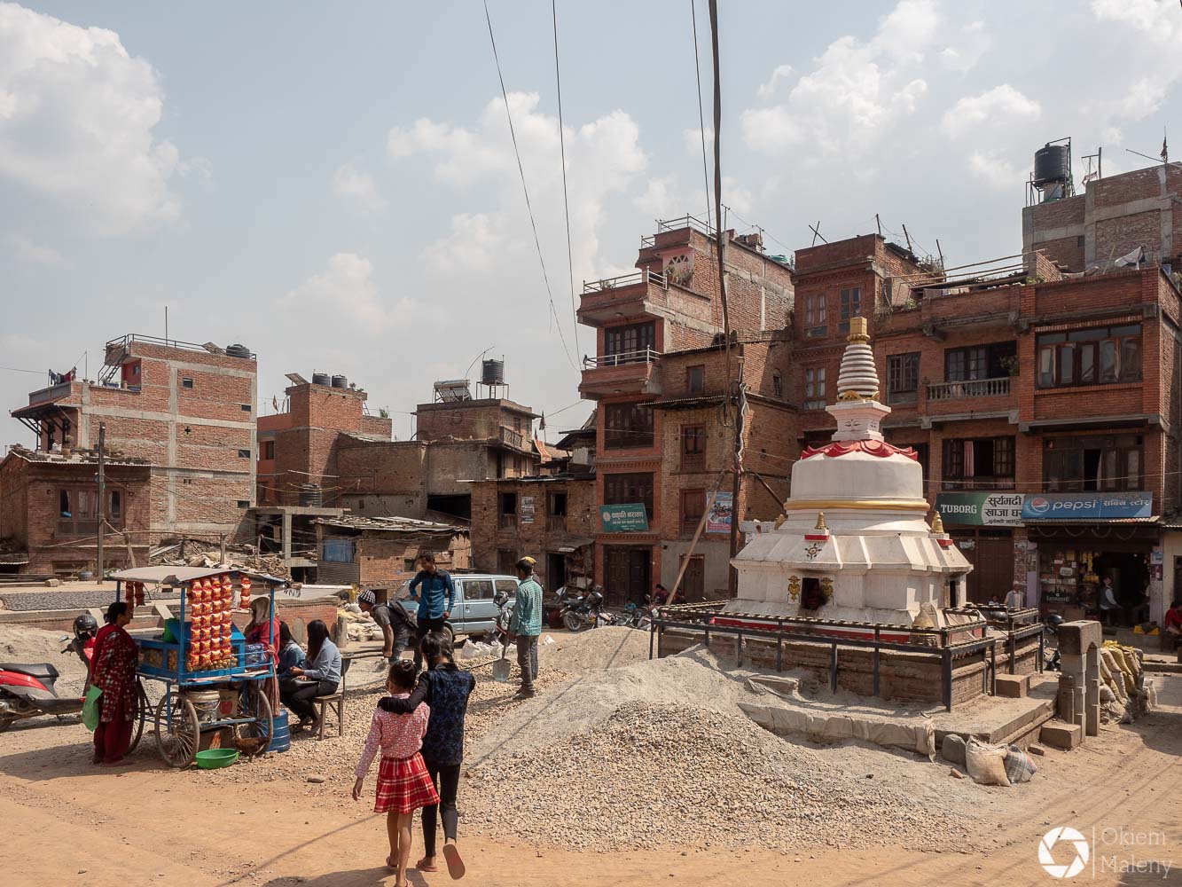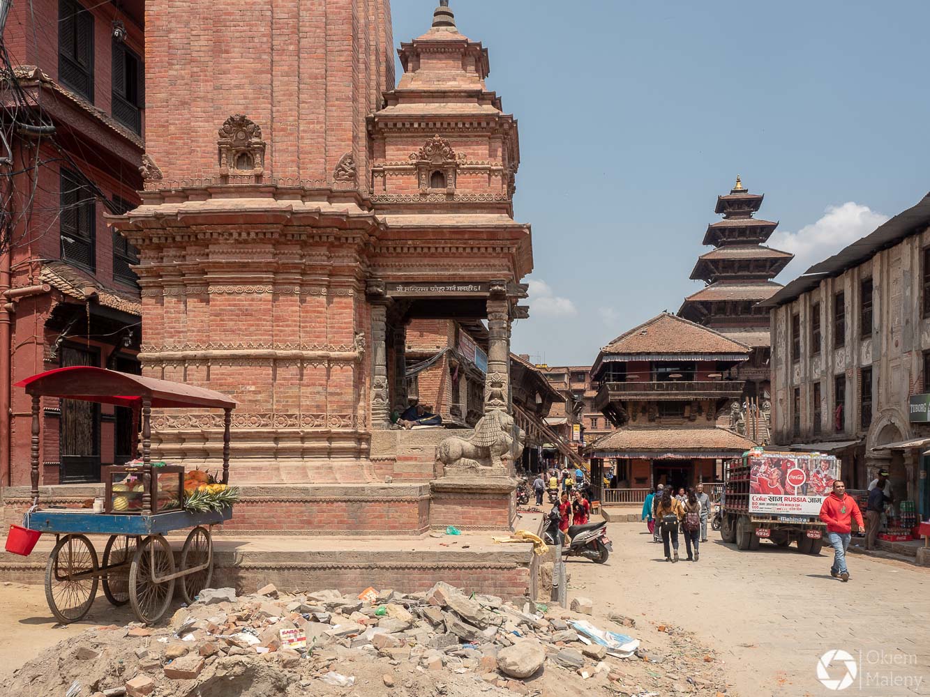 To historyczne, newarskie miasteczko z jednej strony zachwyca pieknem zdobień budynków, z drugiej zasmuca ogromem zniszczeń po trzesieniu ziemii. Praktycznie to jeden wielki plac budowy/odbudowy. Oprócz świątyń i domów pokazujących kunszt newarskiego rękodzieła mamy całą plejadę domów bez dachów, domów, z których została tylko fasada, rumowisk i pietrzących się cegieł. Na każdym kroku grupki budowlańcow – w przeważającej części kobiet – coś segreguje, muruje, usuwa gruzowiska.