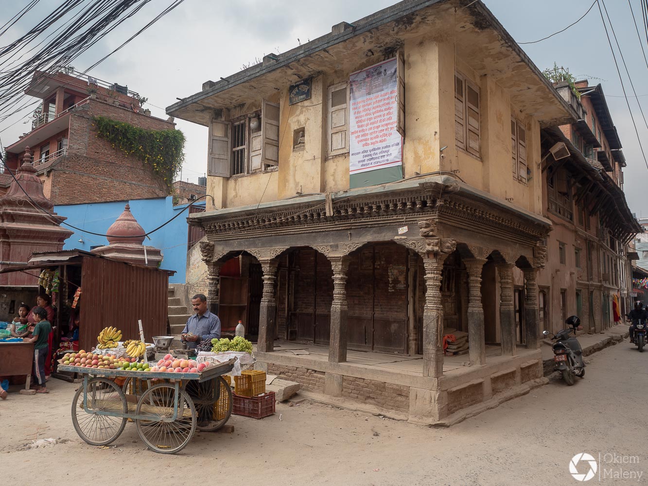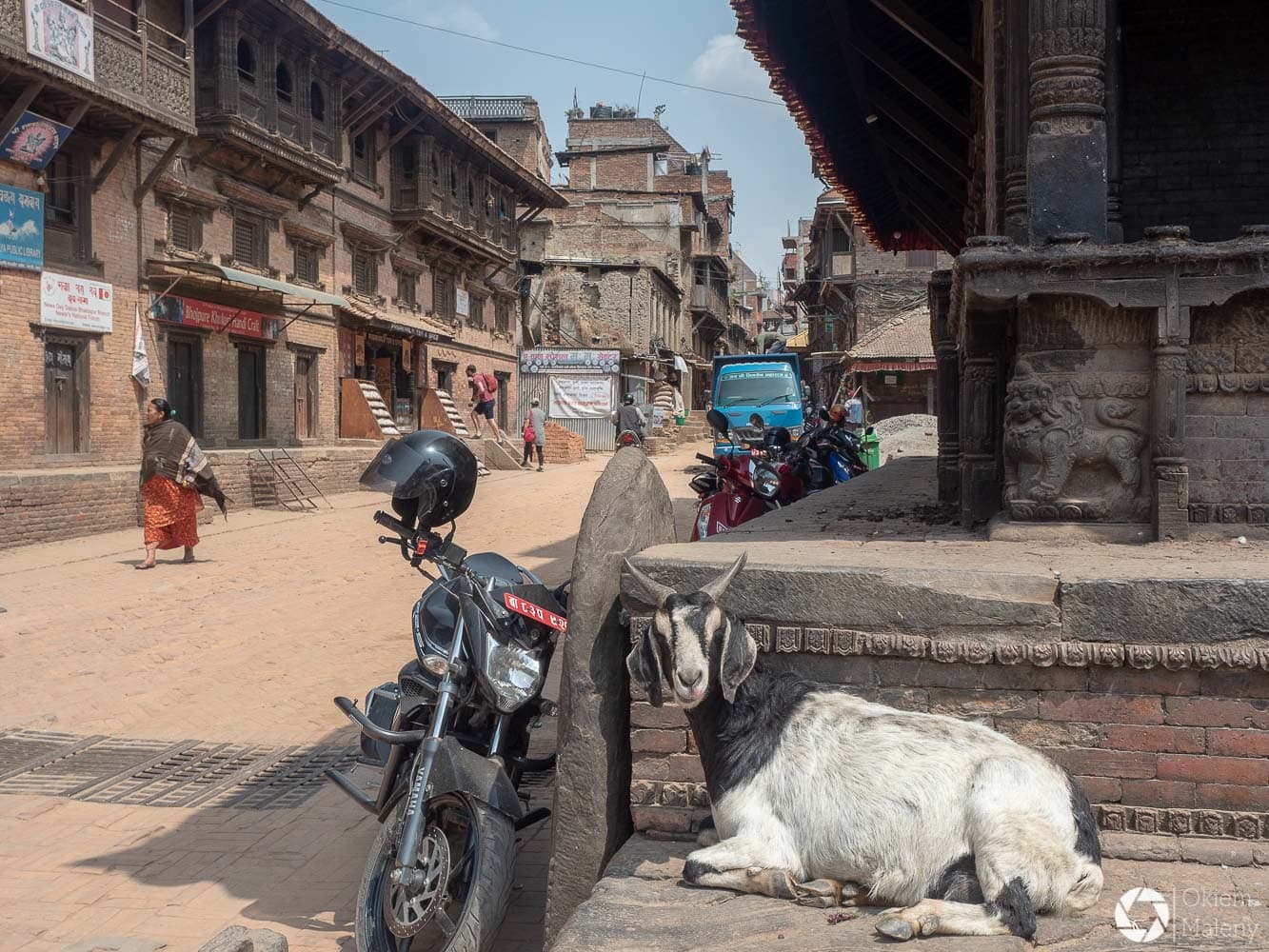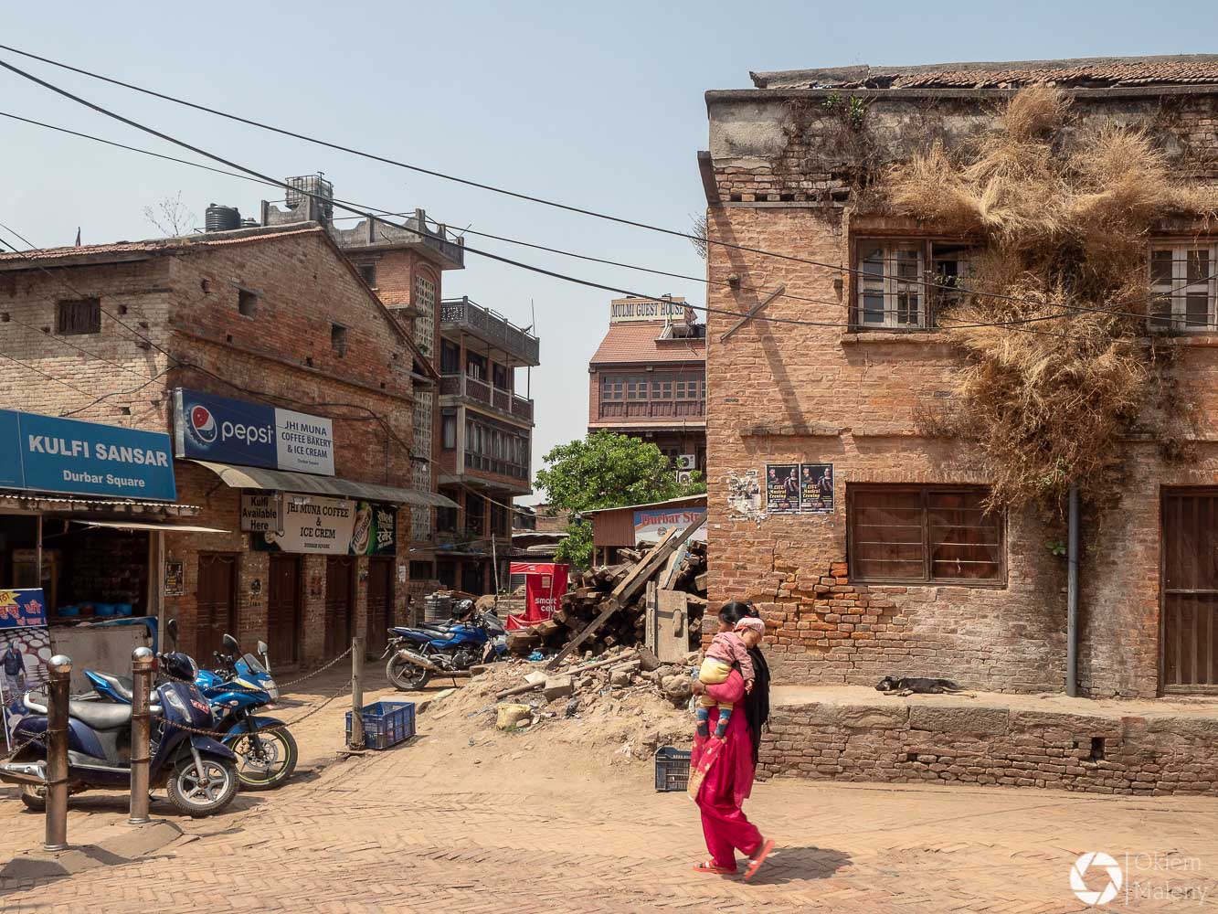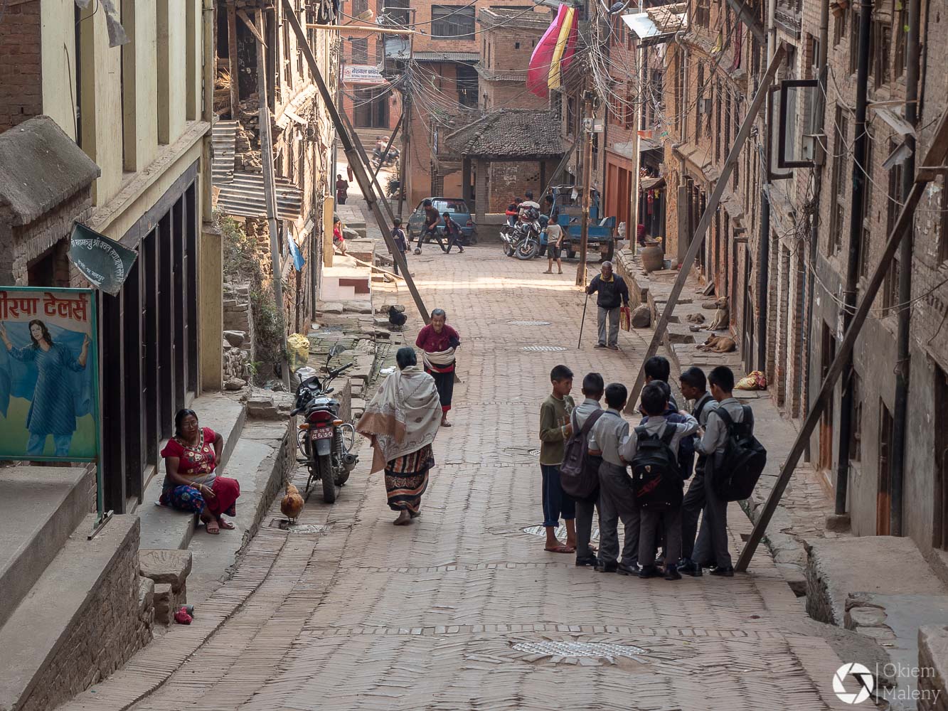 To historyczne, newarskie miasteczko z jednej strony zachwyca pieknem zdobień budynków, z drugiej zasmuca ogromem zniszczeń po trzesieniu ziemii. Praktycznie to jeden wielki plac budowy/odbudowy. Oprócz świątyń i domów pokazujących kunszt newarskiego rękodzieła mamy całą plejadę domów bez dachów, domów, z których została tylko fasada, rumowisk i pietrzących się cegieł. Na każdym kroku grupki budowlańcow – w przeważającej części kobiet – coś segreguje, muruje, usuwa gruzowiska.