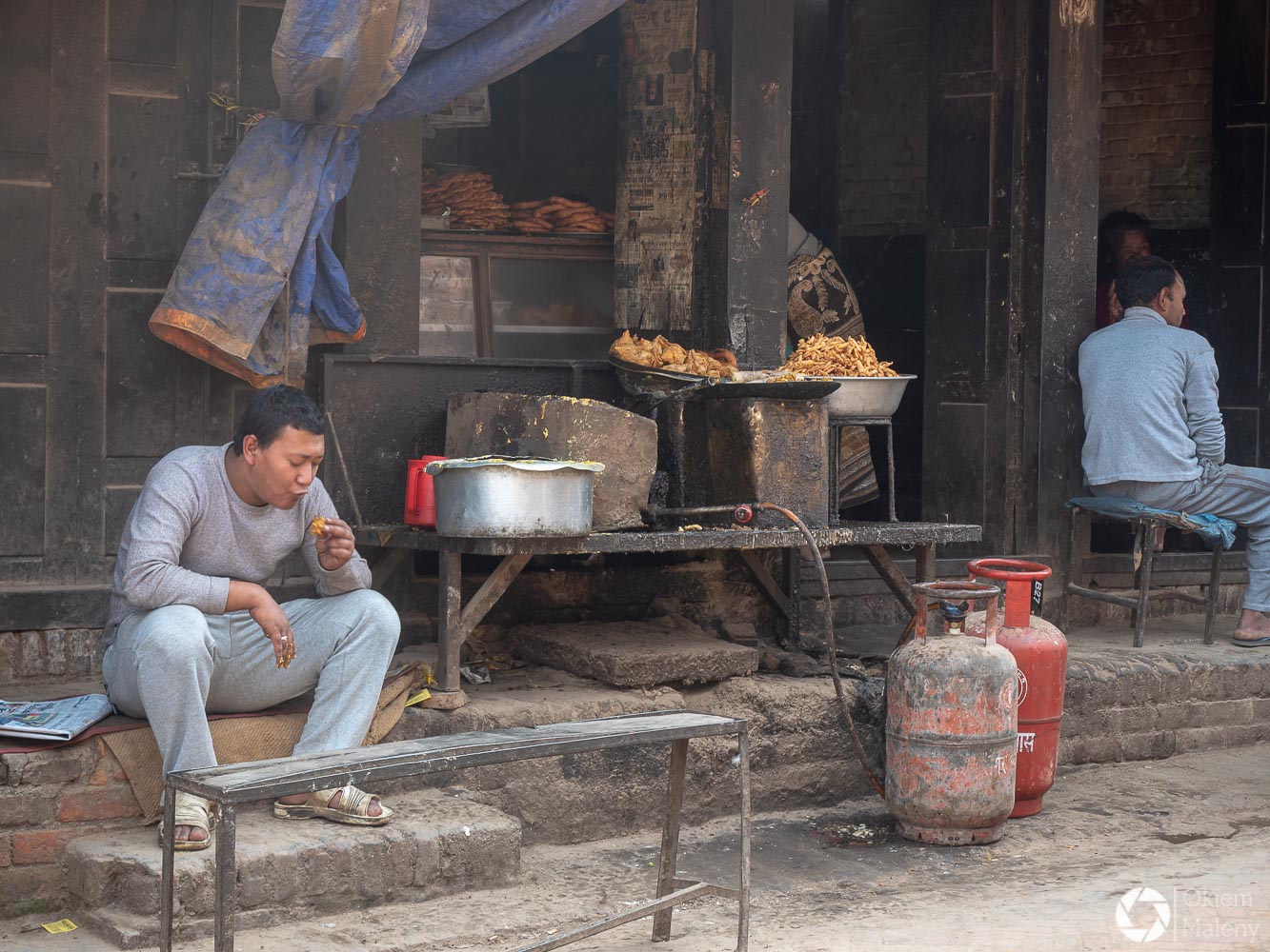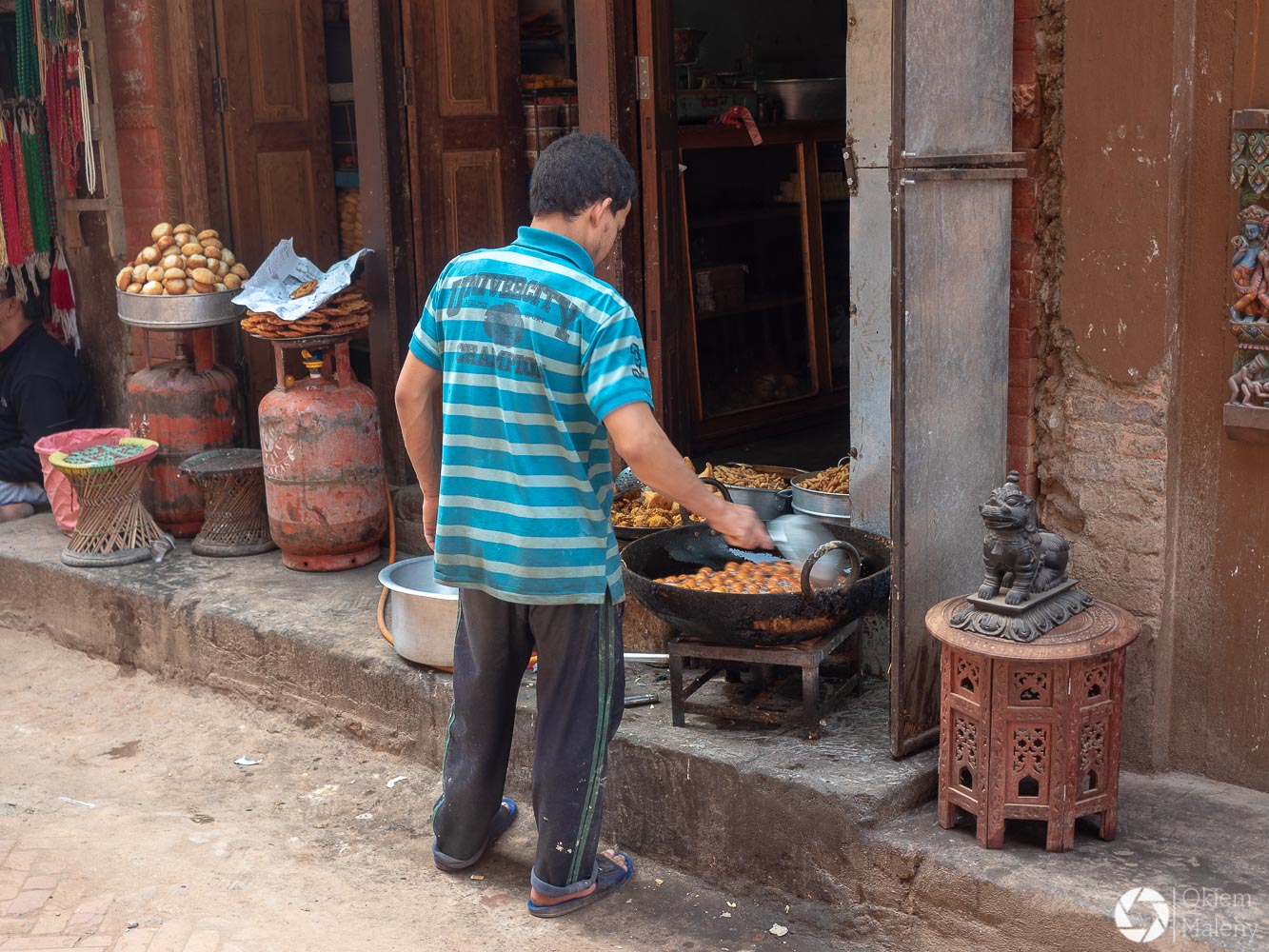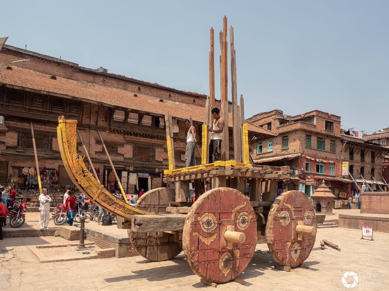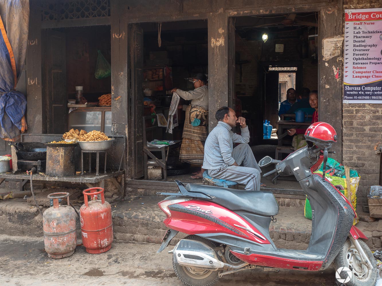 To historyczne, newarskie miasteczko z jednej strony zachwyca pieknem zdobień budynków, z drugiej zasmuca ogromem zniszczeń po trzesieniu ziemii. Praktycznie to jeden wielki plac budowy/odbudowy. Oprócz świątyń i domów pokazujących kunszt newarskiego rękodzieła mamy całą plejadę domów bez dachów, domów, z których została tylko fasada, rumowisk i pietrzących się cegieł. Na każdym kroku grupki budowlańcow – w przeważającej części kobiet – coś segreguje, muruje, usuwa gruzowiska.