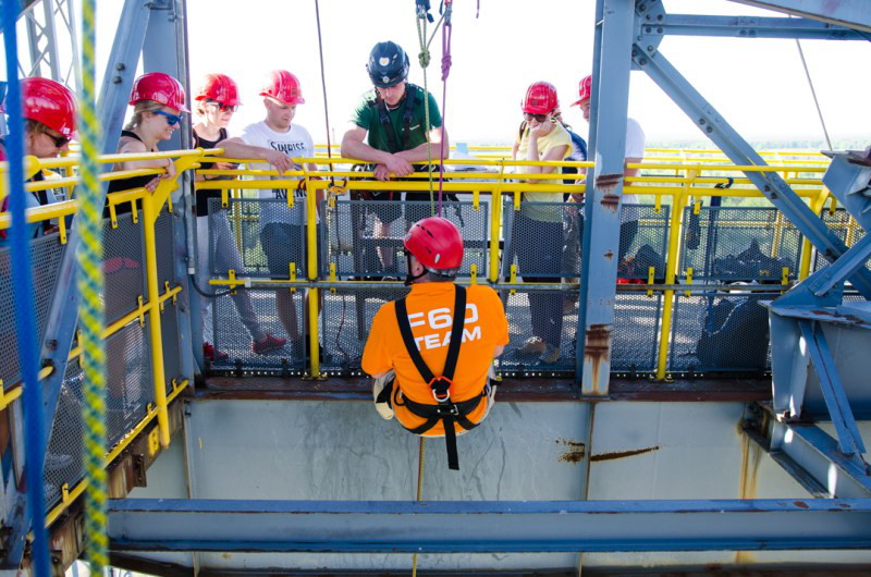 Zejść z F60 możemy na dwa sposoby – zjechać windą lub zejść po linie. Sama nie odważyłam się na tym krok, ale reszta ekipy wspominała, że najgorszy jest pierwszy moment, kiedy musimy odbić się od powierzchni. Później z każdym metrem bliżej ziemi jest coraz przyjemniej. Po linie schodzimy za pomocą dłoni, cały czas jesteśmy w uprzęży. Nawet jeśli puścicie linę, zostaniecie „zablokowani” i gwałtownie nie zjedziecie w dół. Atrakcja z pewnością dla osób szukających wrażeń:)