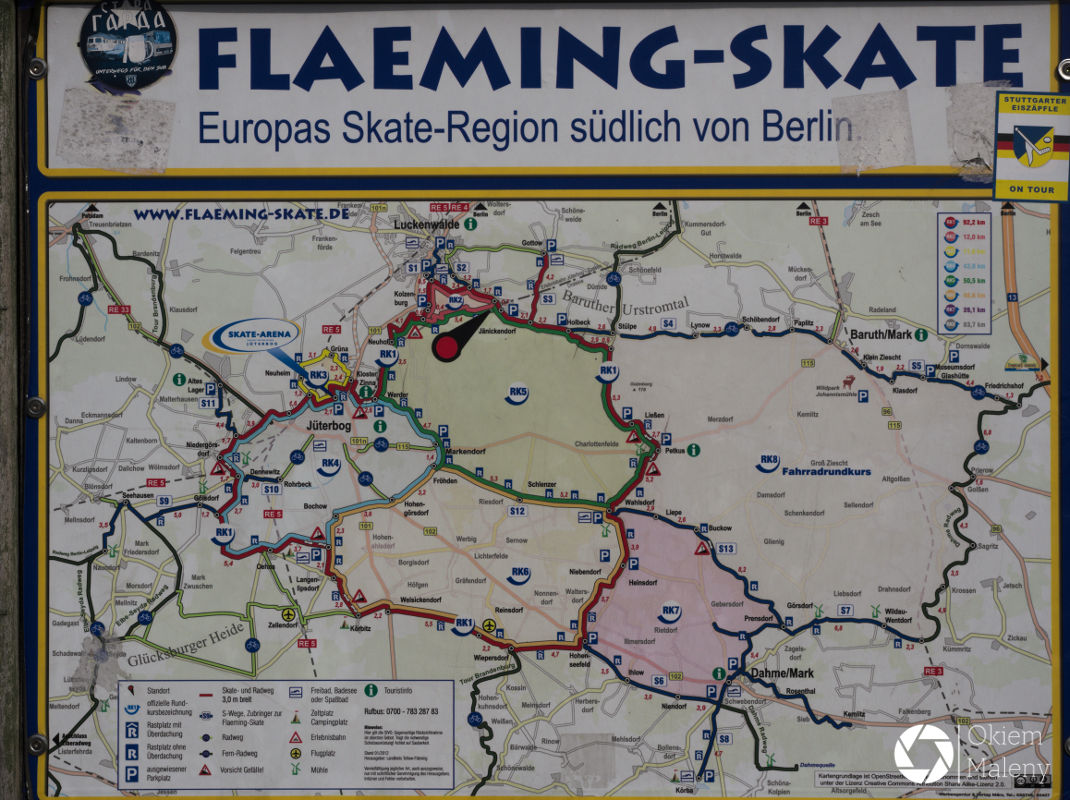 Jeśli jesteśmy przy temacie rolek i rowerów to nie sposób nie wspomnieć o Flaeming Skate. Dla mnie, zapalonego rolkarza (tu macie historię o tym, jak przejechałam maraton a rolkach) to absolutnie cudowne miejsce. Wyobraźcie sobie 230 km pięknego asfaltu. Trasy przebiegające wsród pól, lasów oraz przez małe miejscowości. Do wyboru pętle różnej długości od 11 km do 90. Bajka co nie?