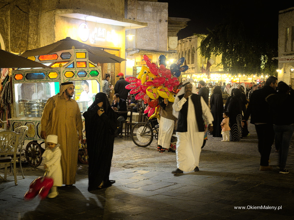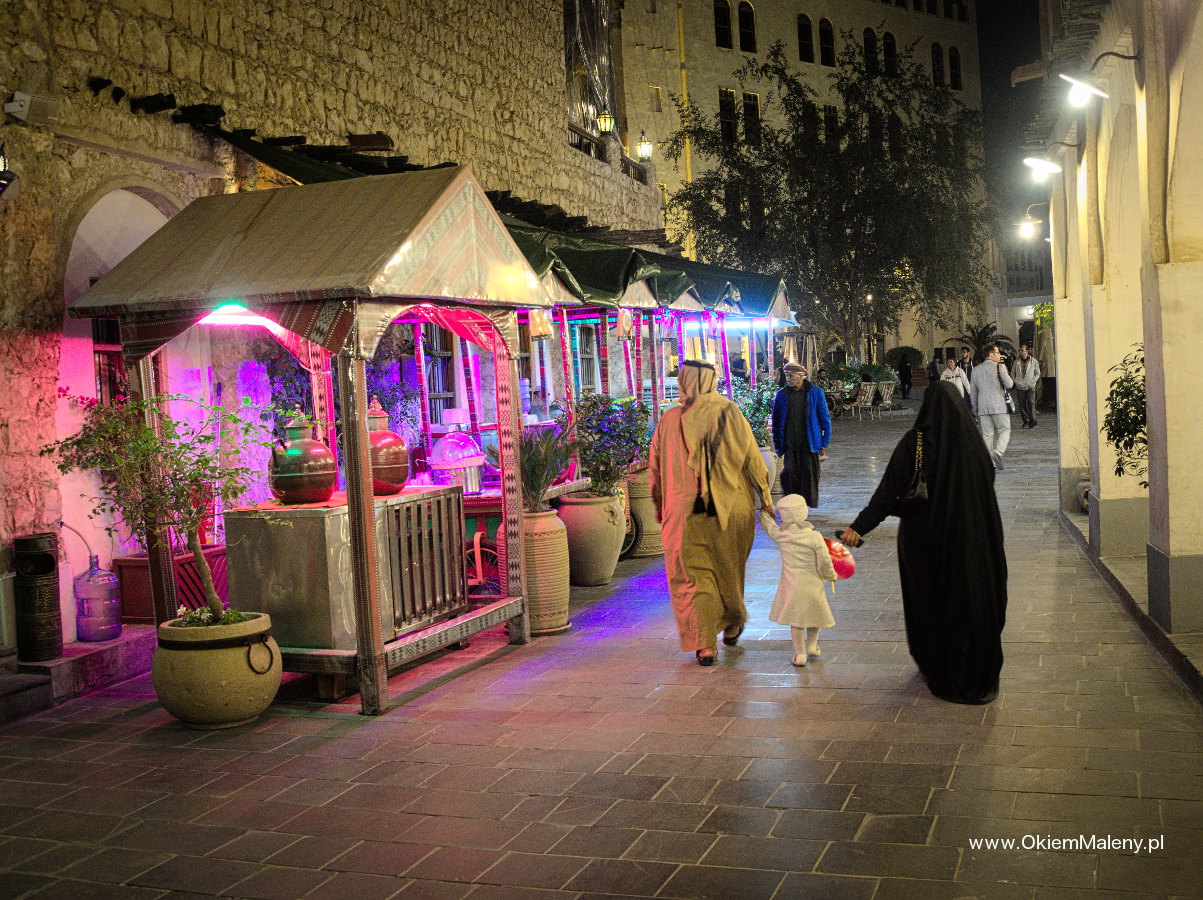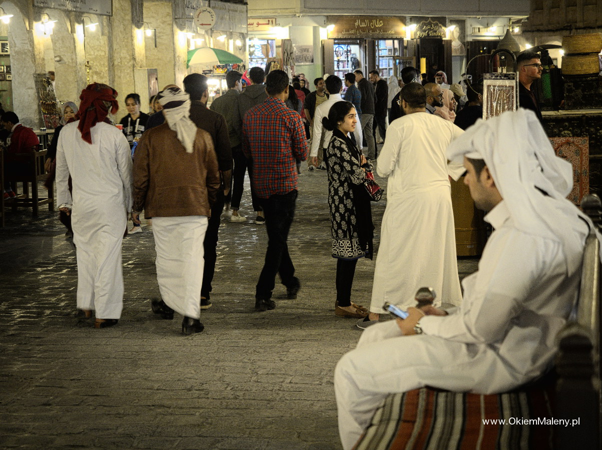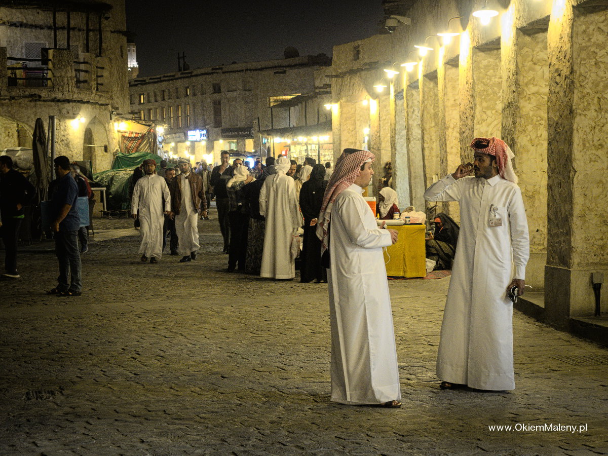Ostatnim punktem programu były odwiedziny na typowym katarskim targu. Znajduje się tam wiele knajpek, kafejek, sklepików i kramów. Warto zapuścić się w plątaninę wąskich uliczek. Tak trafiliśmy na mini targ ze zwierzętami. Były tam setki klatek z przeróżnymi ptakami. Oczywiście największe wrażenie robiły ogromne papugi. Oprócz ptactwa roiło się od miniaturowych króliczków. Większość była ubrana w sukieneczki.