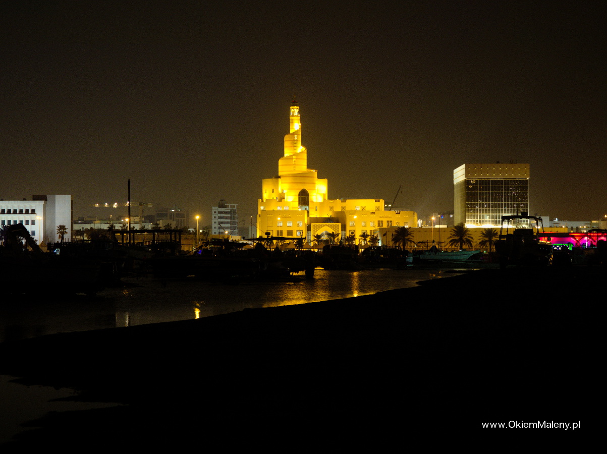 Pierwszym przystankiem była promenada Doha Cornische i widok na biznesową dzielnicę wieżowców West Bay. Każdy budynek jest pięknie podświetlony. Zdecydowanie jest to widok, który zapisuje się w pamięci. Miejsce nie jest sporo oddalone od lotniska – znajduje się około 13 km od niego. Dojazd z lotniska jest dość mało spektakularny, jednak warto zwrócić uwagę na oświetlenie ulic i cudne kolorowe latarnie.