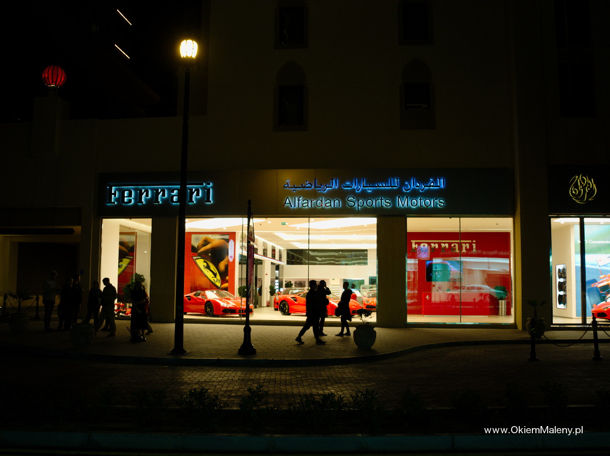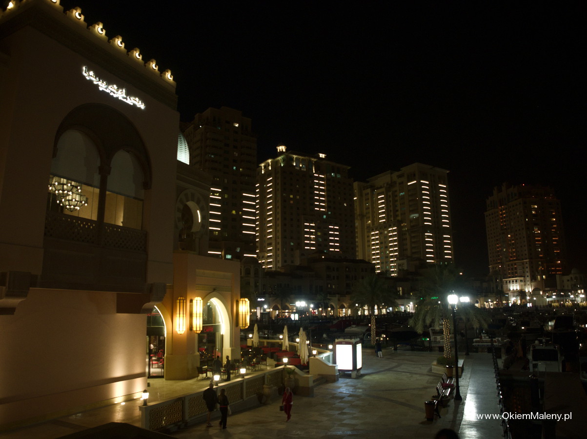 Perła Kataru to ogromna sztuczna wyspa, zajmująca aż 4 km kwadratowe. Na wyspie znajdują się przystanie jachtowe, hotele, apartamentowce i restauracje. Dla miłośników motoryzacji jest salon Ferrari, Maserati oraz Royce – Royce. Mieszkają tam najzamożniejsi mieszkańcy stolicy. Co daje się zauważyć? Połączenie nowoczesności z tradycją i niesamowity przepych. Przejechaliśmy bulwarem Pearl, by wysiąść na krótki spacer w pobliżu przystani. Spod salonu Ferrari odjechały dwa czerwone Ferrari. Cudnie oświetlone budynki i ulice, w przystani zacumowane motorówki, sklepy Soni Rykiel, Hermesa, Armaniego, Gucciego, po promenadzie przechadzali się mężczyźni w nieskazitelnie białych szatach. Wyglądało to jak opowiadanie z nowoczesnej wersji baśni z 1000 i 1 nocy.