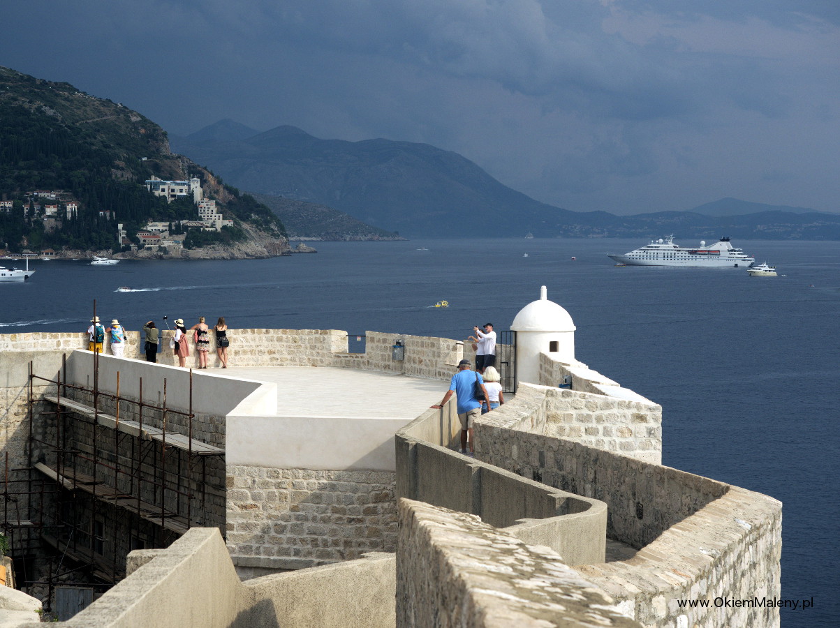 Chcecie sfotografować katedrę, fontannę Onufrego, Stradun, a tu ciągle albo czyjaś głowa, albo ręka. A teraz za blisko, kadr pęka w szwach, teraz za daleko i znowu obca głowa w kadrze. Mury miejskie to idealne miejsce aby po pierwsze przyjrzeć się im na spokojnie, powoli, a po drugie dają możliwość zrobienia naprawdę fajnych zdjęć.