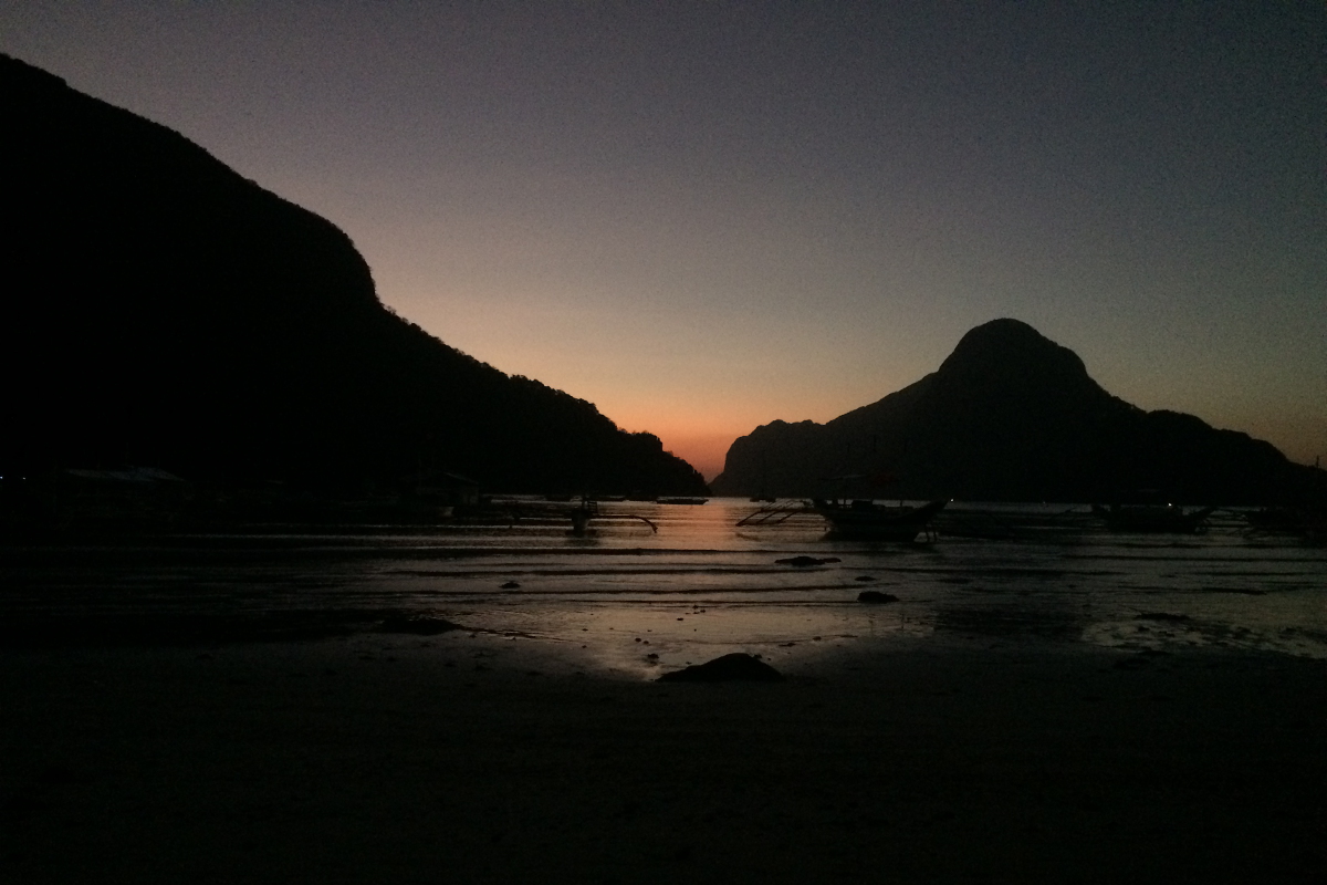 Każdego wieczoru zachodzące Słońce tworzy na niebie przecudny spektakl. Warto pojechać do pobliskiego Corong Corong i stamtąd podziwiać zachód słońca. W samym El Nido góry zasłaniają 😉 zachód, w Corong Corong jest zdecydowanie szersza perspektywa.