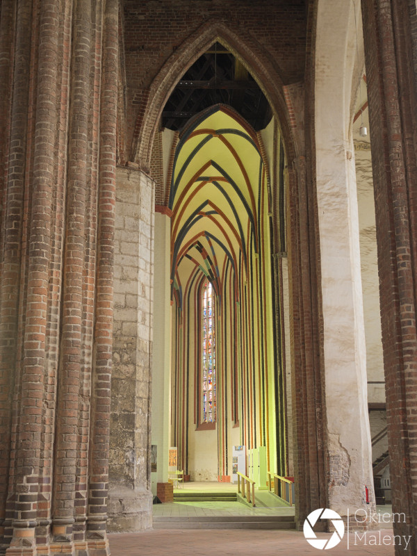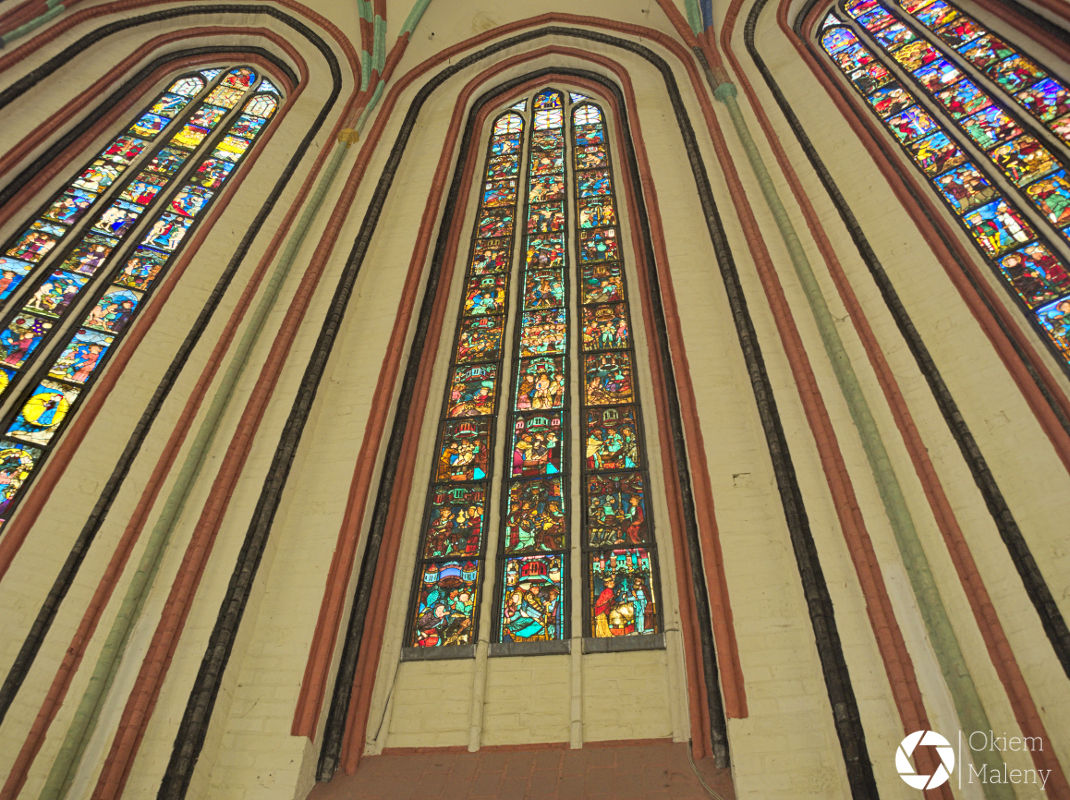 Witraże w luterańskim kościele Mariackim (St. Marien Kirche) pochodzą z XIV wieku. W 1946 zniknęły – Rosjanie wywieźli je transportem rabunkowym do Rosji i znaleziono je na początkach lat 90 w piwnicach muzeum Ermitaż w Petersburgu. Do kościoła powróciły w 2001 roku, kolejne 6 brakujących sztuk znaleziono w muzeum Puszkina w Rosji w 2007 roku.