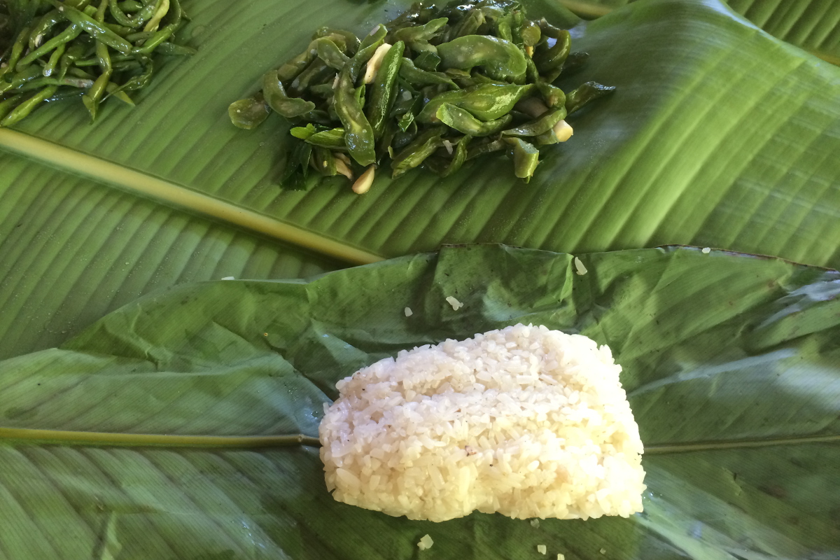 W Restauracjach ryż podawany jest w specjalnych koszyczkach. Je się go rękoma. Nie zapomnijcie po skończeniu zamknąć koszyczka. Laotański savoir – vivre. Czasem może się zdarzyć, że napotkacie ryż podawany w bambusowych tutkach. Gdy wybierzecie się na treking i tam ryż Was nie ominie. Tym razem będzie zapakowany w liście bananowca. Liście bananowca są dość twarde i łamliwe, jednak trzymane przez chwilę nad ogniskiem stają się giętkie – w sam raz do zapakowania porcji ryżu dla każdego.