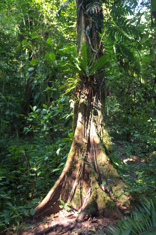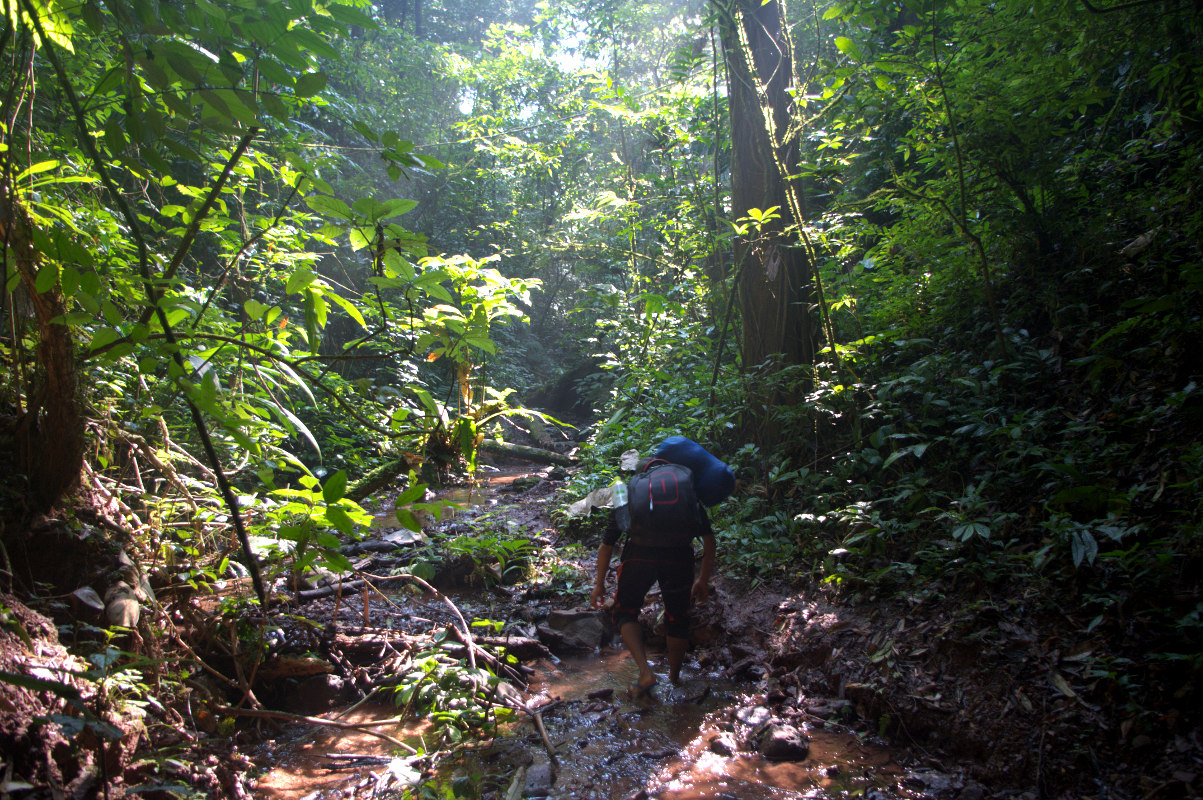 Po śniadaniu w sercu dżungli nadszedł czas na opuszczenie naszego obozowiska i dalszy marsz. Przewodnik zapewnił nas, że dziś trasa będzie łatwiejsza niż dnia poprzedniego. Trudno domyślić się co miał dokładnie na myśli mówiąc łatwiejsza. Rzeczywiście pokonaliśmy mniejsze różnice wysokości, ale droga po której szliśmy przez kilka pierwszych kilometrów, była cienką dróżka między z jednej strony stromą ścianą dżungli a wierzchołkami drzew z drugiej strony. Raz po raz zagradzały ją wielkie pnie zwalonych drzew. Wszystko było dość śliskie. Na plecach czułam głośny oddech jednej z dziewczyn. Przez pół trasy uspokajaliśmy ją bojąc się, że wpadnie w panikę i nie ruszy się ani o krok dalej.