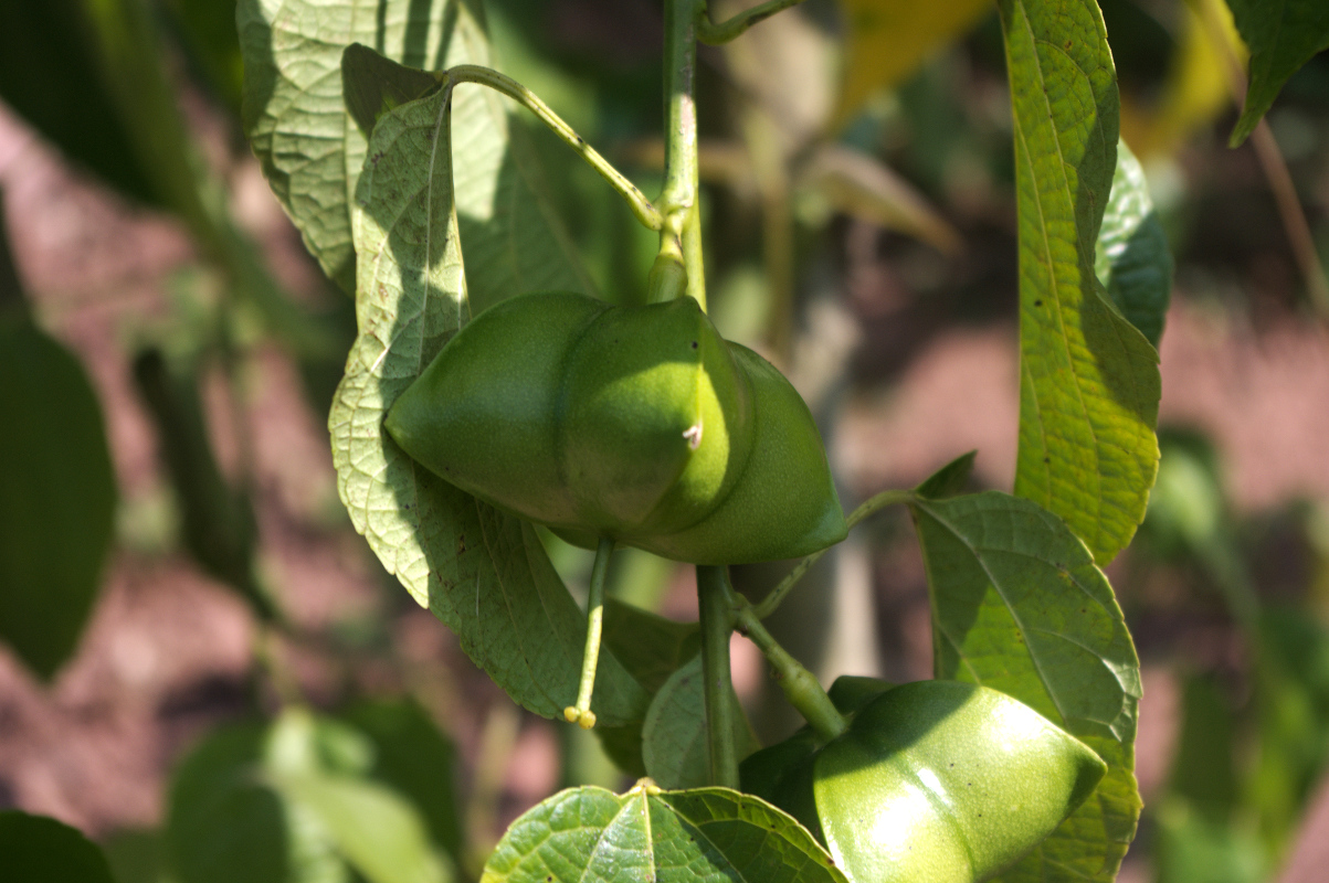Minęliśmy też uprawę czegoś. No i tu właśnie nie ma pojęcia czego 🙂 Może ktoś z Was wie i powie co to za czworokątny owoc? Podobno z tej rośliny można zrobić olej.