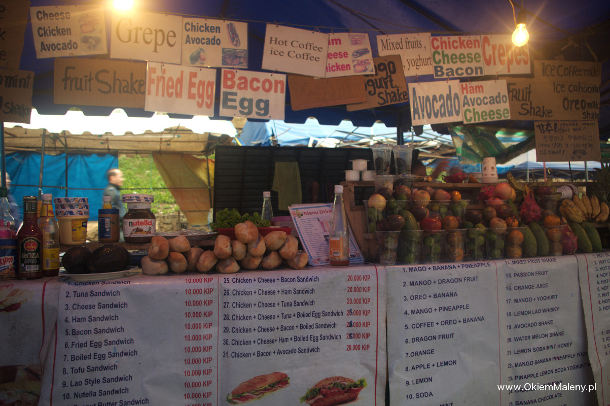 - cena hotelu: 110.000 kip / pokój dwuosobowy w bocznej uliczce niedaleko rzeki