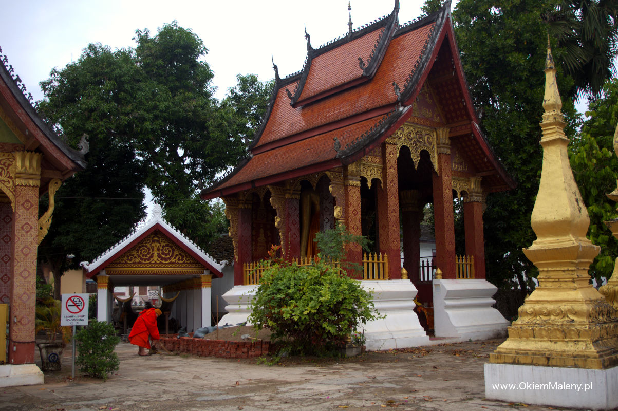 16 – wieczny kompleks świątynny. Jeden z najważniejszych w całym Laosie. Świątynie ozdobione są cudnymi mozaikami. Chyba jedna z ładniejszych. Wstęp płatny.