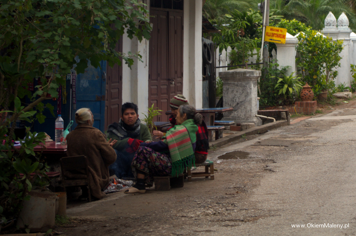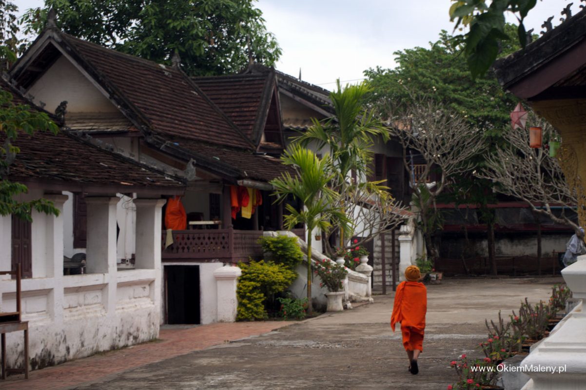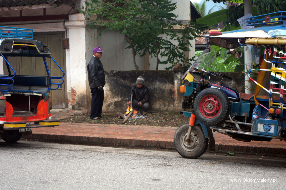 Luang Prabang czy też Louangphrabang do XVI wieku była stolicą Laosu. Nazwa pochodzi od posągu Buddy, który ofiarowano władcy w XIV wieku i oznacza Królewskie Miasto Delikatnego Obrazu Buddy. Położone jest nad Mekongiem. Starówka znajduje się na urokliwym półwyspie i w 1995 roku została wpisana na listę Unesco jako unikatowy przykład kolonialnej, francuskiej architektury. Rzeczywiście spacer jej uliczkami jest niezapomniany. Kolonialne budynki, liczne świątynie, a to wszystko otoczone niesamowitą zielenią. Gdzieniegdzie samochody kompletnie nie z tej epoki. W erze zimna i deszczu jeszcze tlące się gdzieniegdzie ogniska i koksowniki przy których ogrzewali się zmarznięci mieszkańcy.