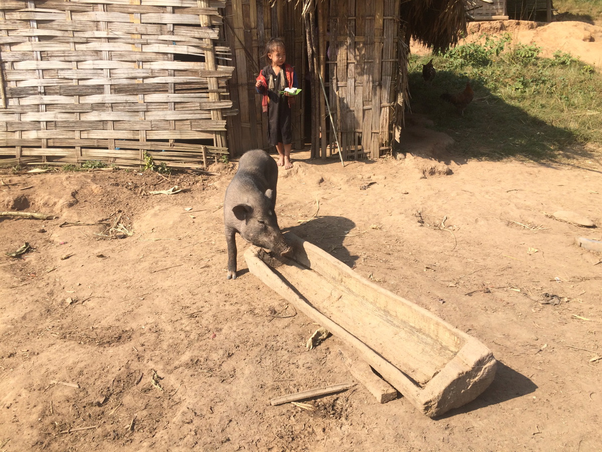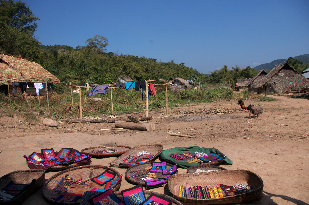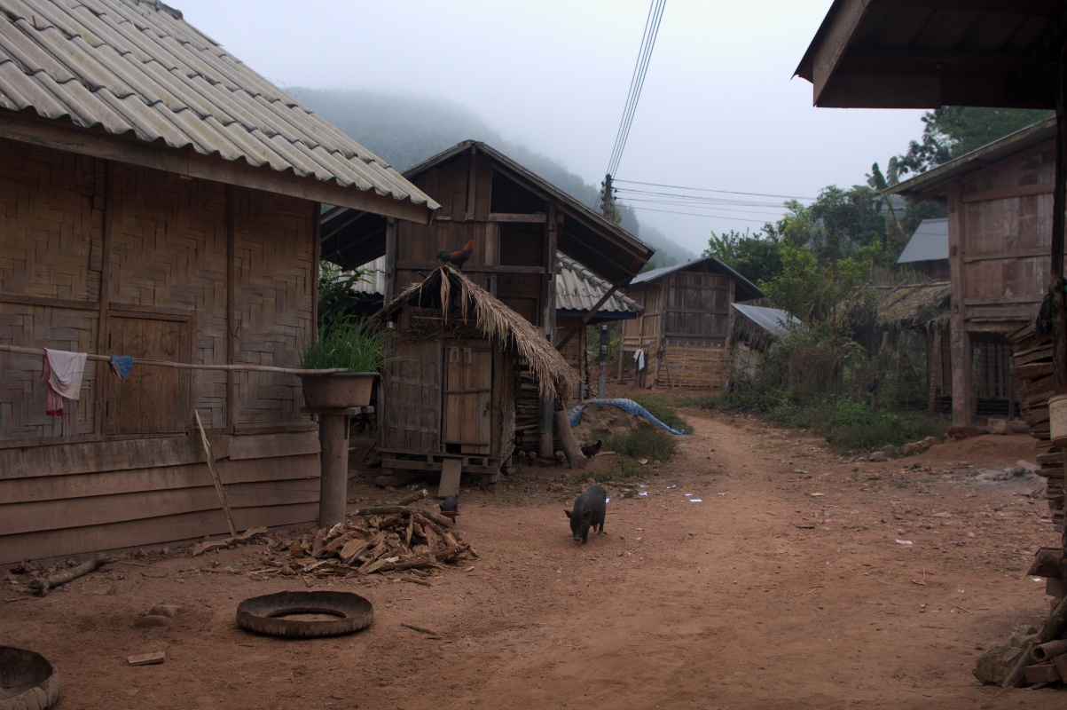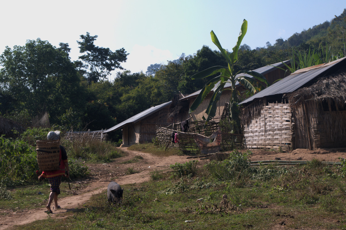 Po lunchu wyruszyliśmy dalej w kierunku wsi Ban Namgoy, zamieszkanej przez grupę etniczną Lantaen. Po drodze spotykaliśmy mieszkańców wioski idących sprzedać swoje zbiory do miasta. Do wioski można się dostać jedynie „spacerem” przez dżunglę. Jest położona około 9 km od głównej drogi. W wiosce nie ma bieżącej wody, ani elektryczności. Czasem tego typu wioski zapewniają sobie prąd kupując panele solarne lub wytwarzając prąd z nurtu rzeki.