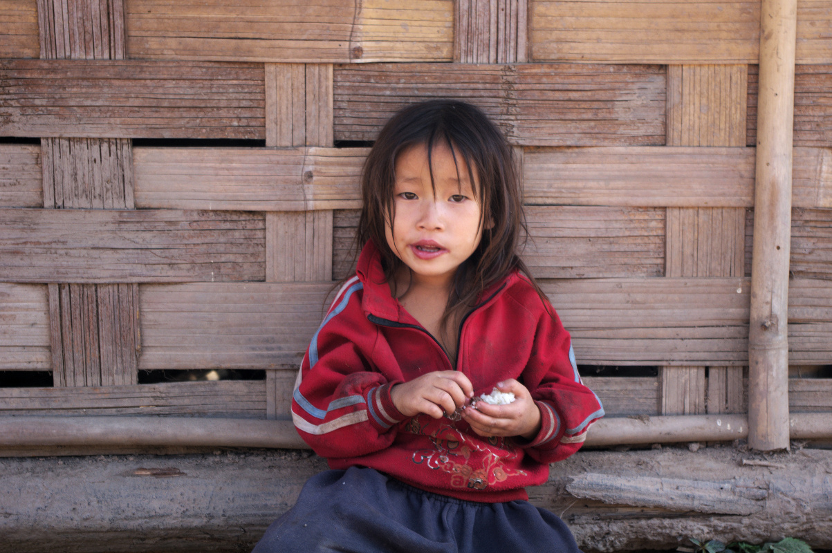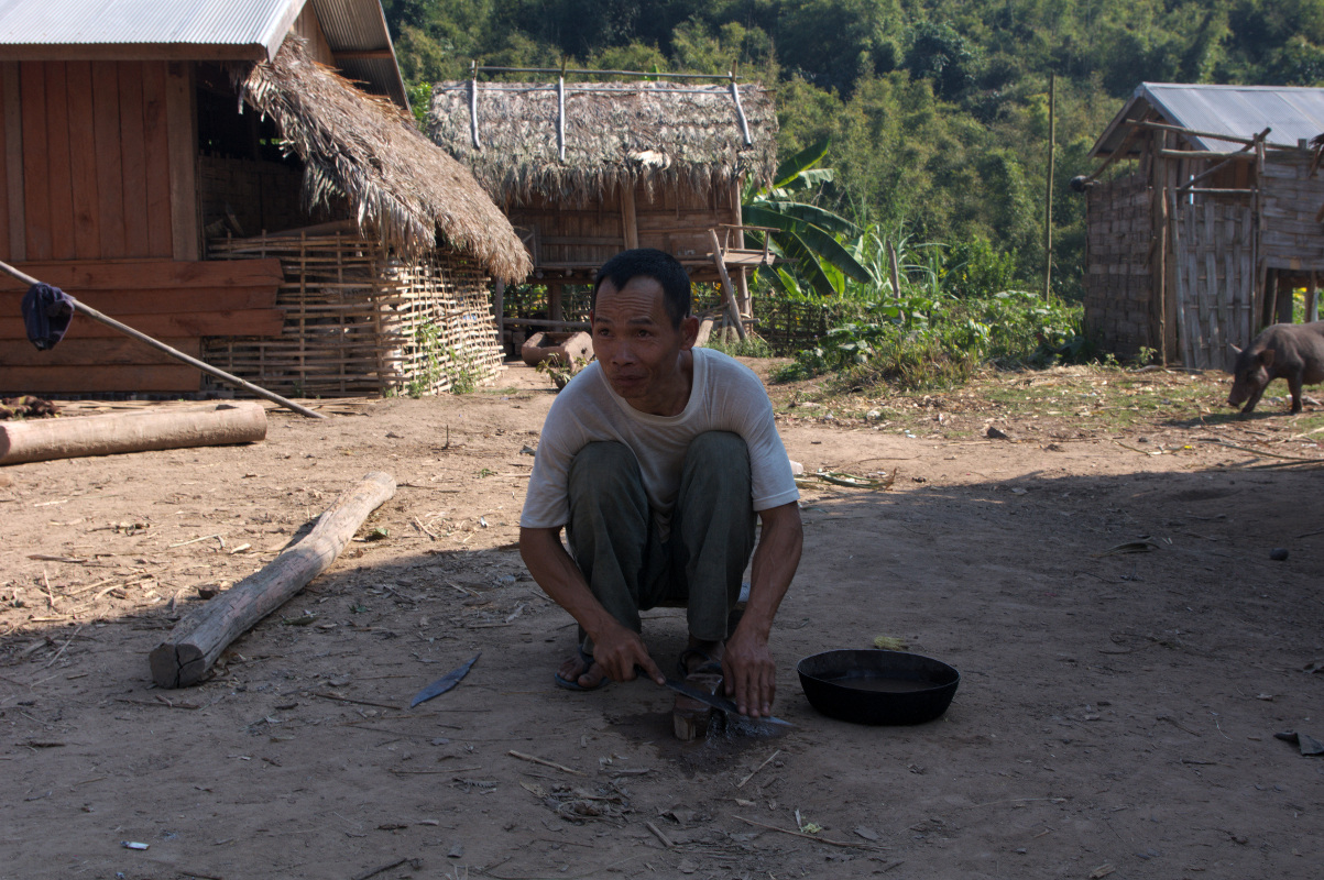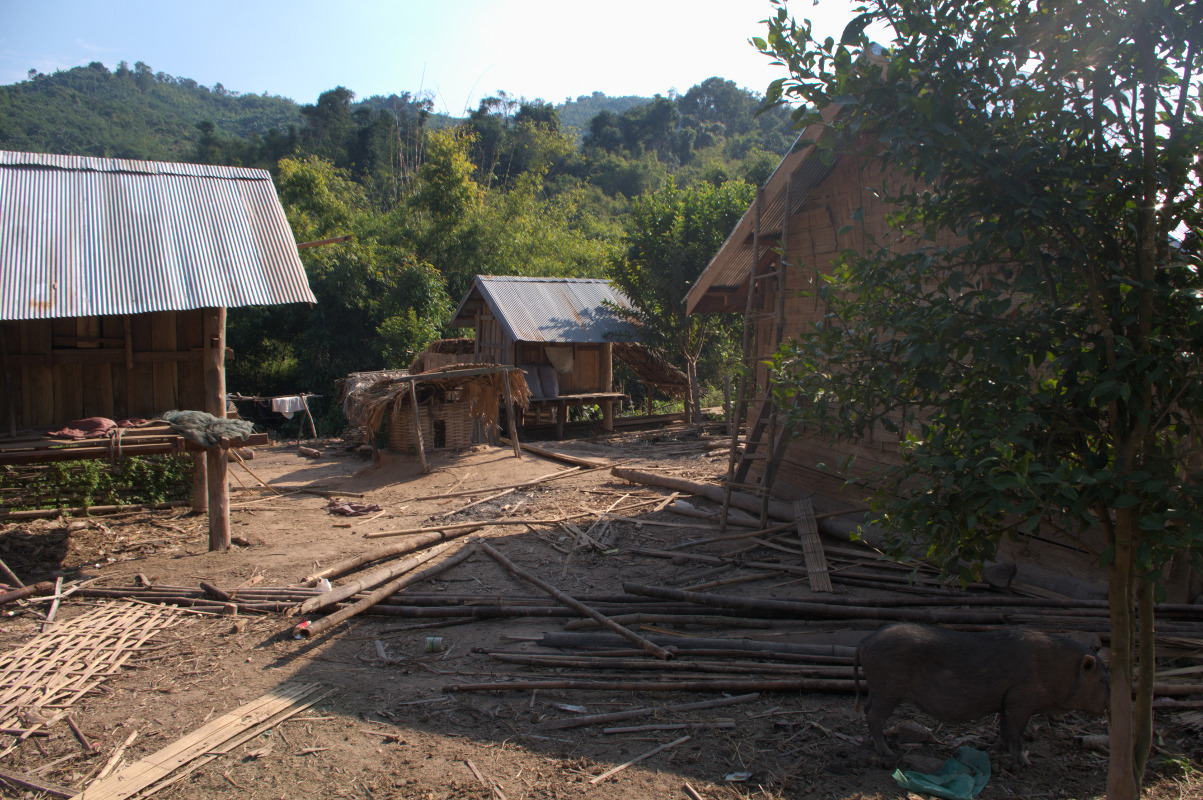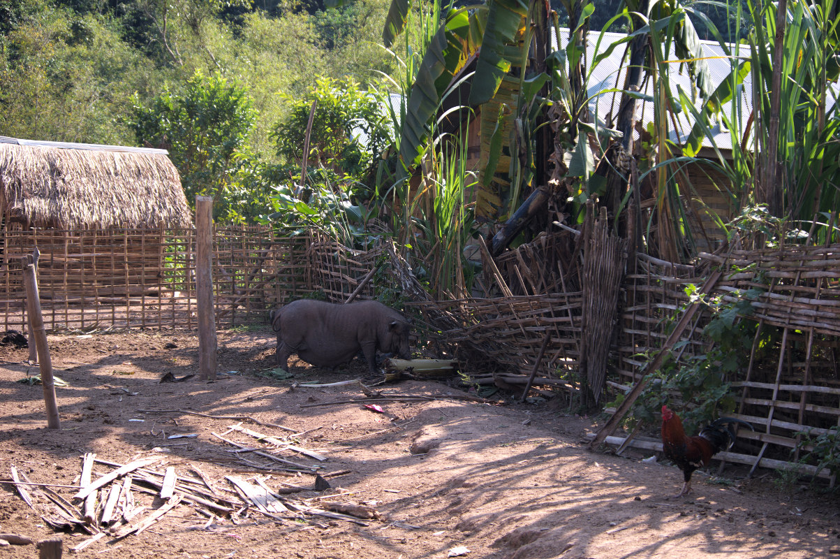 Po lunchu wyruszyliśmy dalej w kierunku wsi Ban Namgoy, zamieszkanej przez grupę etniczną Lantaen. Po drodze spotykaliśmy mieszkańców wioski idących sprzedać swoje zbiory do miasta. Do wioski można się dostać jedynie „spacerem” przez dżunglę. Jest położona około 9 km od głównej drogi. W wiosce nie ma bieżącej wody, ani elektryczności. Czasem tego typu wioski zapewniają sobie prąd kupując panele solarne lub wytwarzając prąd z nurtu rzeki.