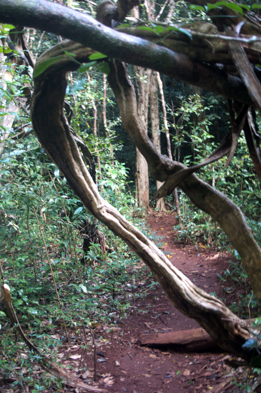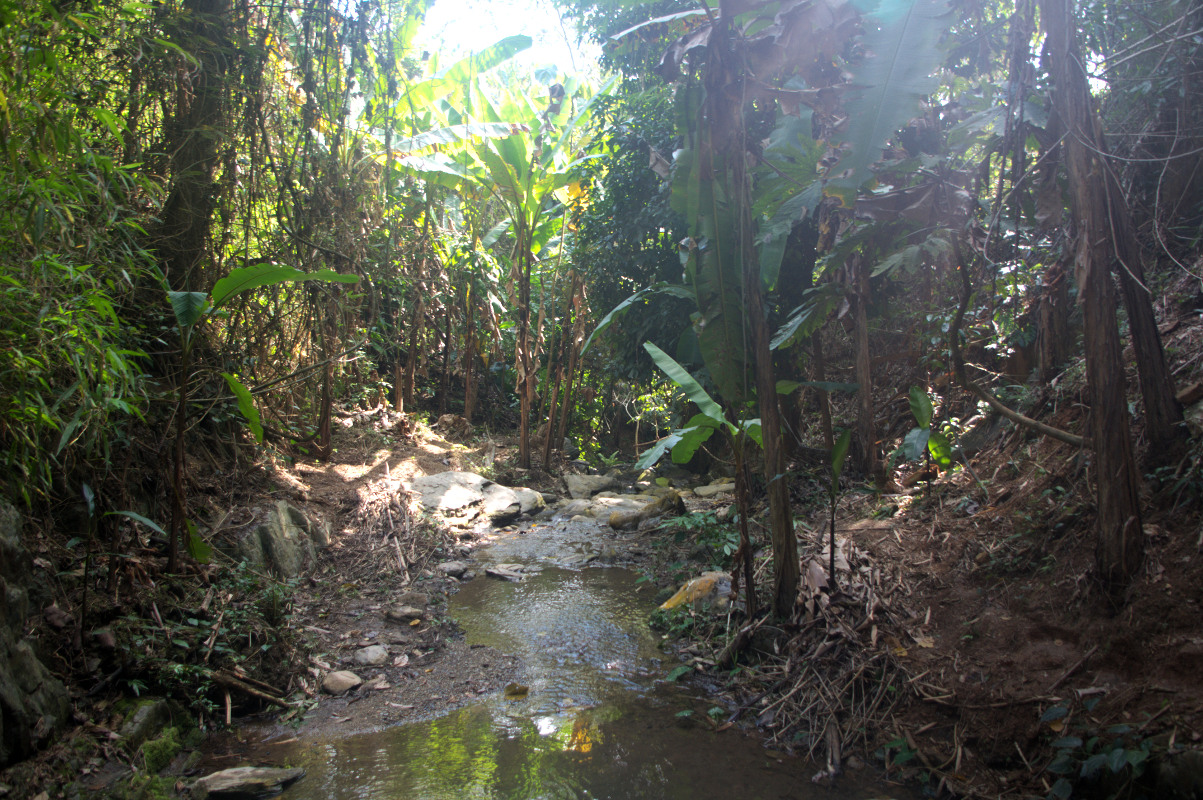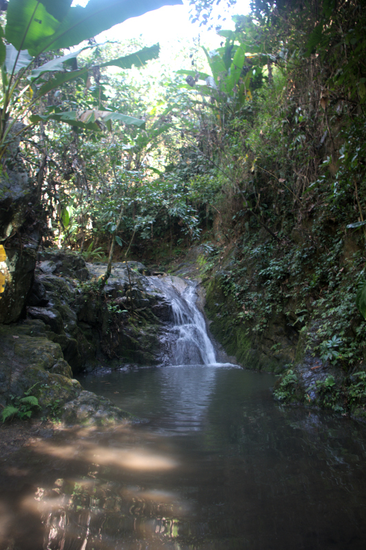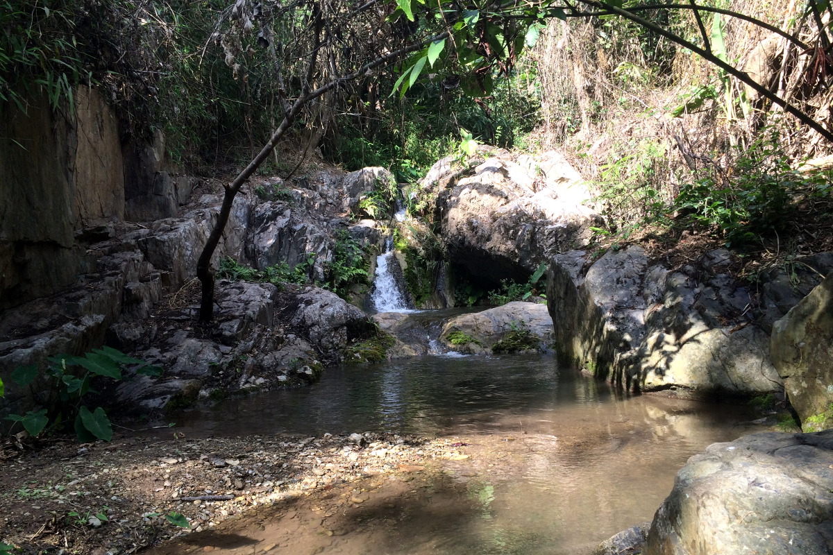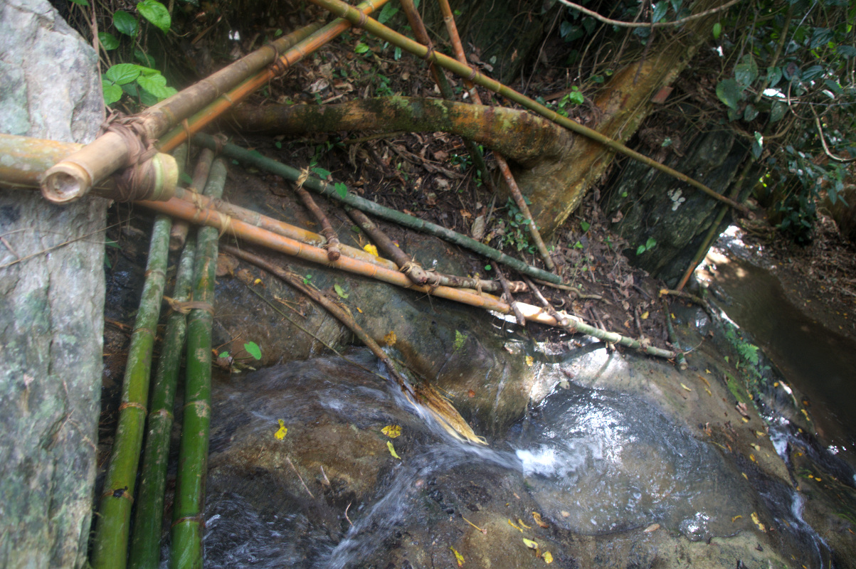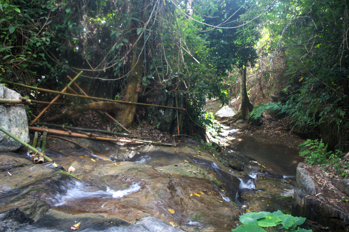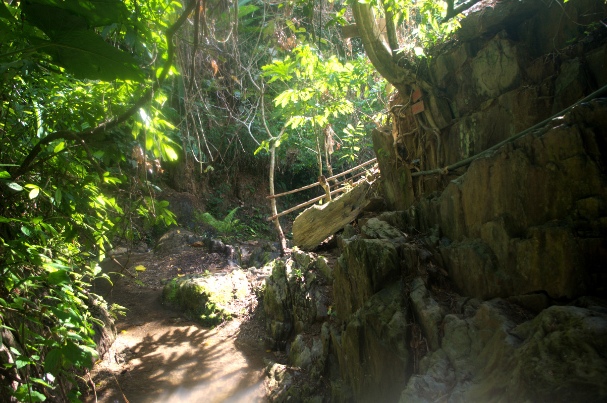 Do pierwszego wodospadu prowadzi droga przez las. Nie jest specjalnie spektakularny. Do drugiego trzeba się dostać przez bambusowe mostki i poręcze przy skałach. Droga jest ciekawa. A szczególnie bambusowy system asekuracji i multum napisów: uwaga, ślisko!. Sam wodospad już zdecydowanie przyjemniejszy, ale to jeszcze nie to. Aby odnaleźć drogę do dalszych trzeba się troszkę wysilić. My byłyśmy przekonane, ze to już koniec trasy. Oczywiście za odwiedziny wodospadów płaci się około dolara/osobę.