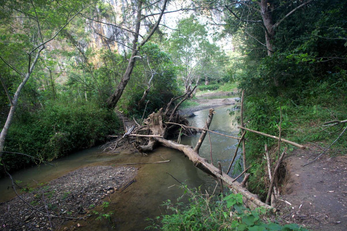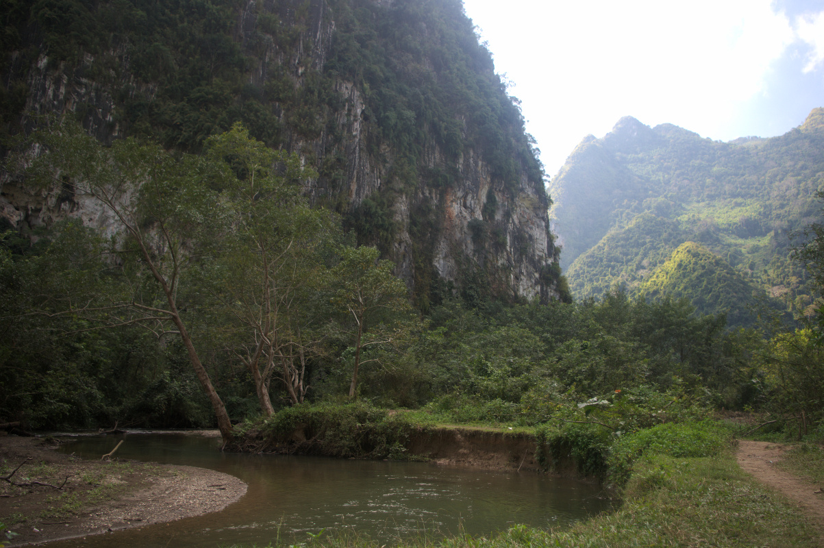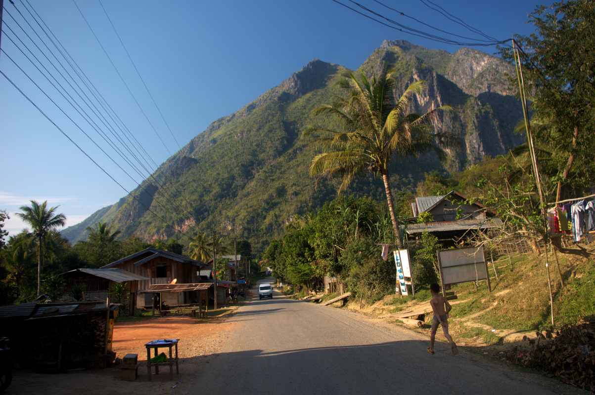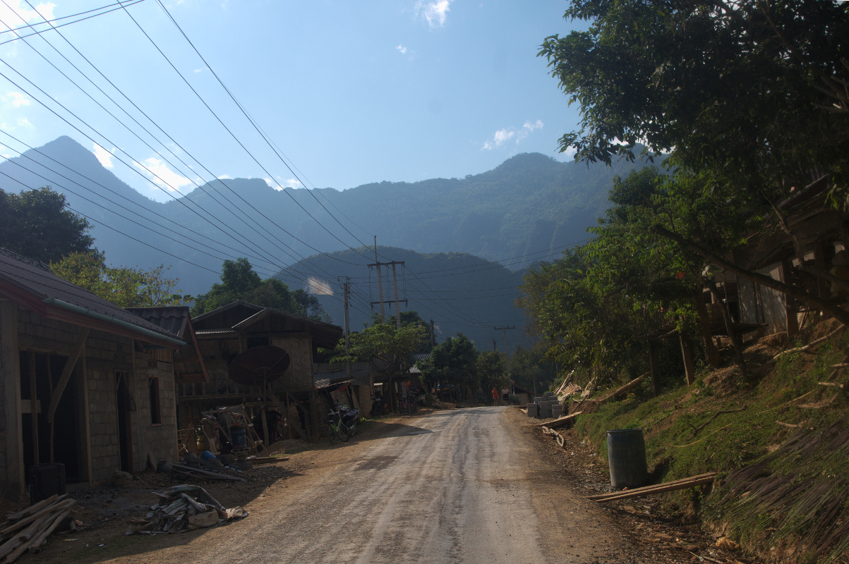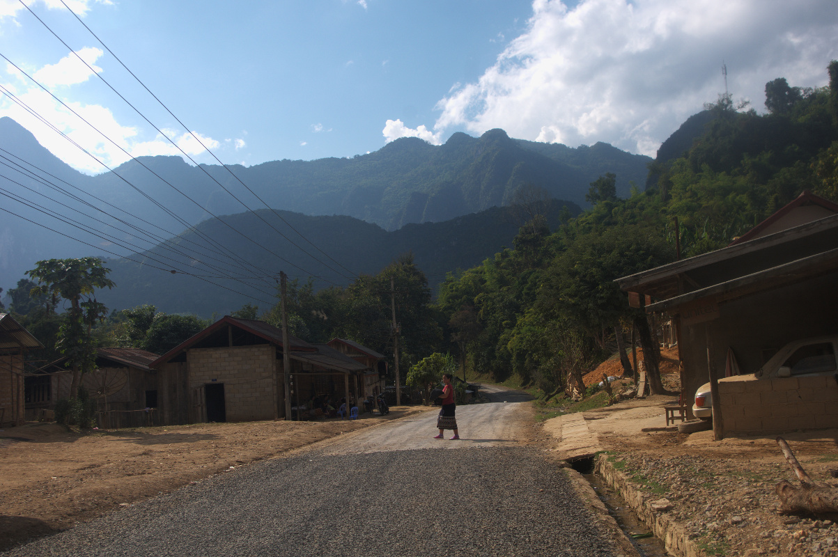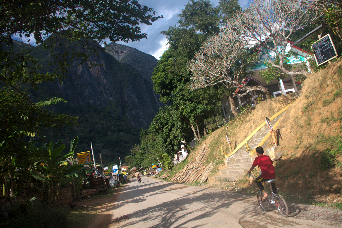 Nong Khiaw jest idealnym miejscem na rowerową wycieczkę. W mieście znajdziecie wiele wypożyczalni rowerów. W Azji z rowerami mam jeden zasadniczy problem – 90% rowerów jest dla mnie za mała. O ile w Chang Mai na za małym rowerze bez problemu zrobiłam 40 km o tyle tu 20 km wycieczka była dla mnie gehenną. Rower po pierwsze był za mały, a po drugie na każdym wyboju siodełko wpadało do środka. Miałam ochotę zrzucić go w przepaść, a laotańskie drogi poznały dość szerokie spectrum polskiego słownictwa. To zdecydowanie nie jest teren na za mały rower bez przerzutek. No chyba, że nie lubicie swoich kolan i toczycie z nimi jakąś wojnę to proszę bardzo. Skończyło się to tym, że pod każde wzniesienie rower wprowadzałam i służył mi generalnie do przemieszczania się po płaskim i zjeżdżania z górek. I tak przez 20 km. Głupota boli, czasem bardzo namacalnie. Przypominam o gorączce dzień wcześniej. W sumie dość wybuchowa mieszanka.
