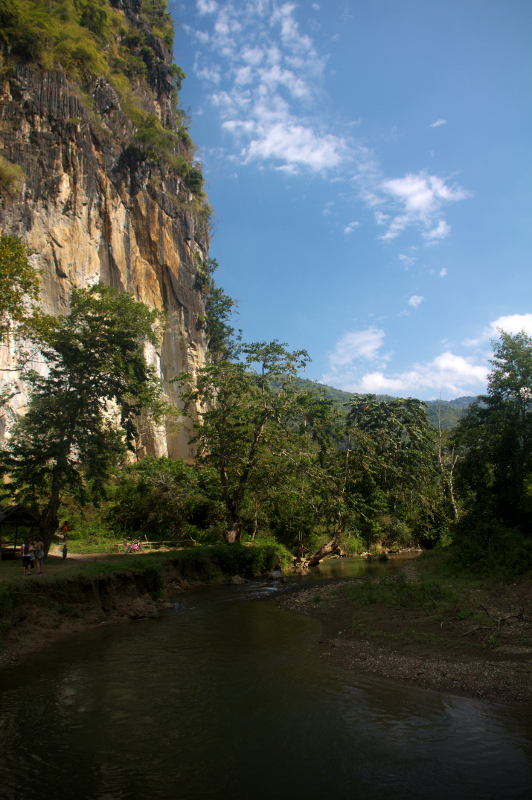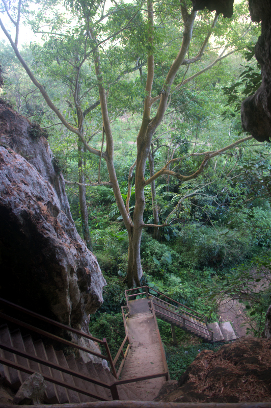 Pierwszy przystanek to jaskinie Pha Tok. Położone są około 3 km od miasta. Wejście kosztuje 5.000 kip. Na miejscu trzeba uważać na lokalnych, samozwańczych przewodników, próbują pobrać kolejną opłatę za zwiedzanie jaskiń. Dobrze mieć przy sobie latarkę. Zdecydowanie się przydaje. Pierwszą jaskinie zbojkotowałam. Podobno nic nadzwyczajnego. Do drugiej wiodą schody kilka metrów w górę. Również nie jest zbyt widowiskowa. Nie jestem miłośnikiem jaskiń.