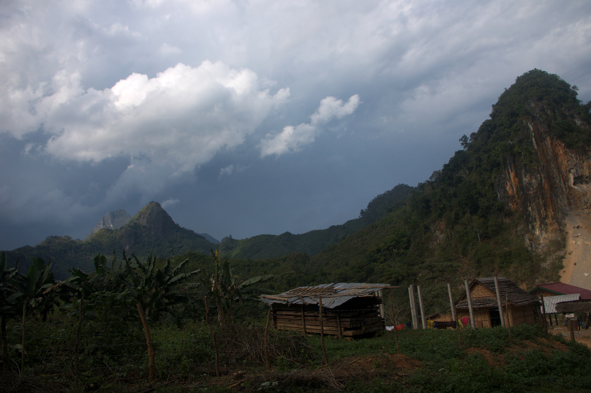 Po deszczowej nocy w trakcie, której widziałam już oczyma wyobraźni jak nasz domek spływa ze strugami deszczu do Nam Ou, przyszedł słoneczny poranek. Gorączka też odeszła z promieniami słońca. Już wczoraj kilka razy słyszałyśmy, że to ostatni słoneczny dzień i zbliża się zmiana pogody. Miałyśmy nadzieje, że jednak tak się nie stanie i to tylko złe proroctwa. Po śniadaniu, na które czekałyśmy około godzinę, poszłyśmy poszukać rowerów.
