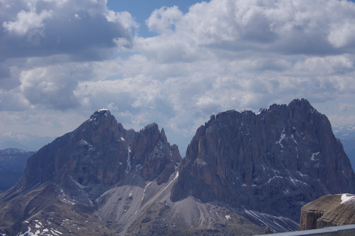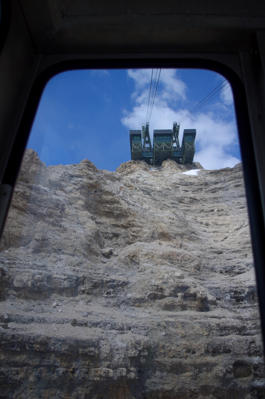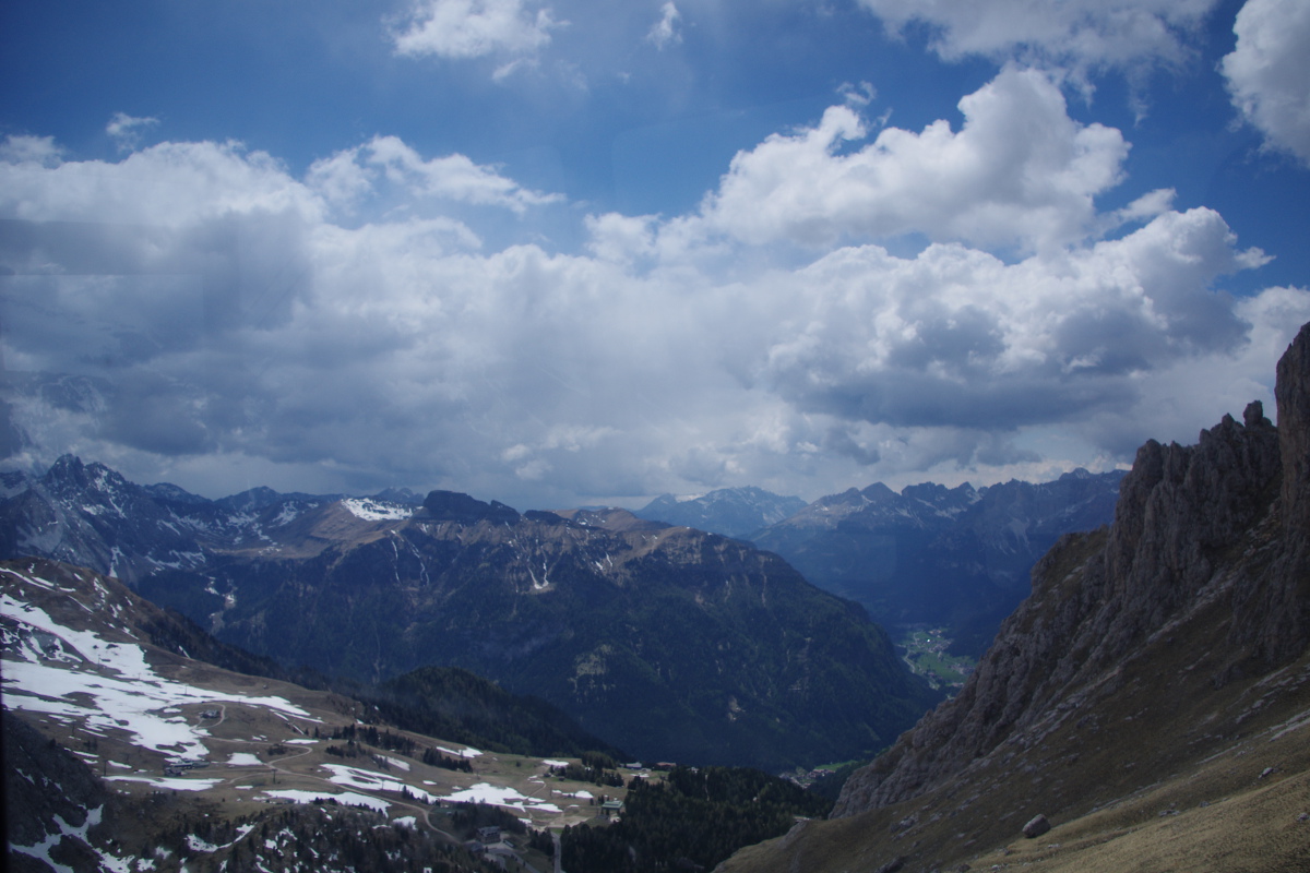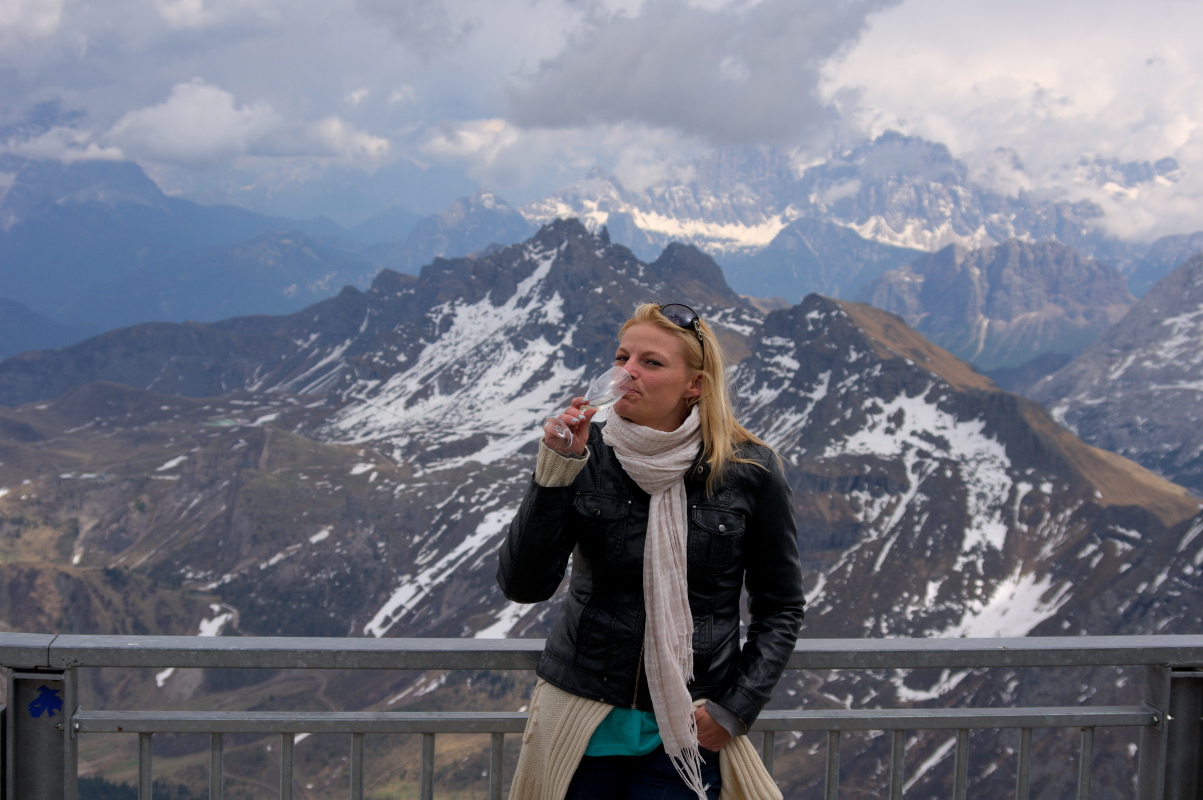 Widoki z Sass Pordoi, z wysokości 2950 m.n.p.m., były niesamowite. Smak prosecco pitego na gór szczycie, w nagrodę za odwagę, również. Droga powrotna małym, chybotliwym wagonikiem też jakoś przyjemniejsza się wydawała, nawet parę razy wychyliłam się zza obiektywu i łypnęłam okiem na okolicę nie blednąc przy okazji 😉