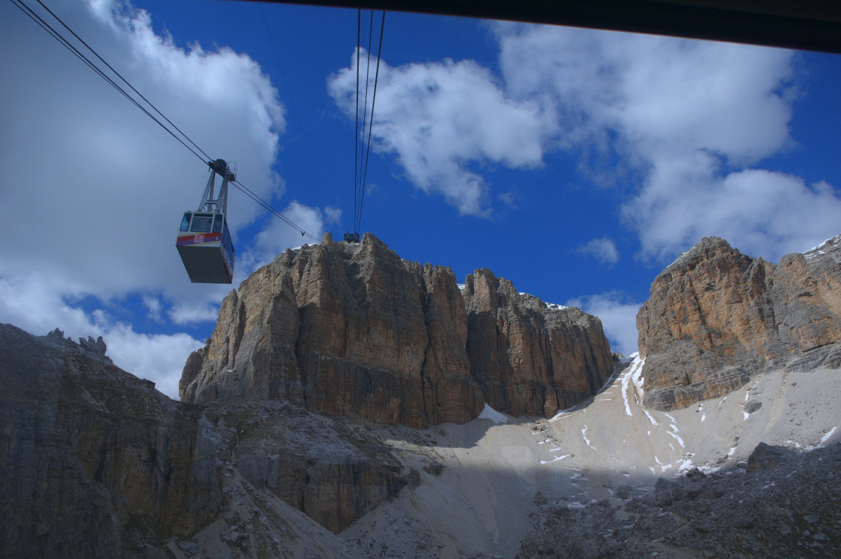 Kolejka linowa z Passo Pardoi na Sass Pardoi