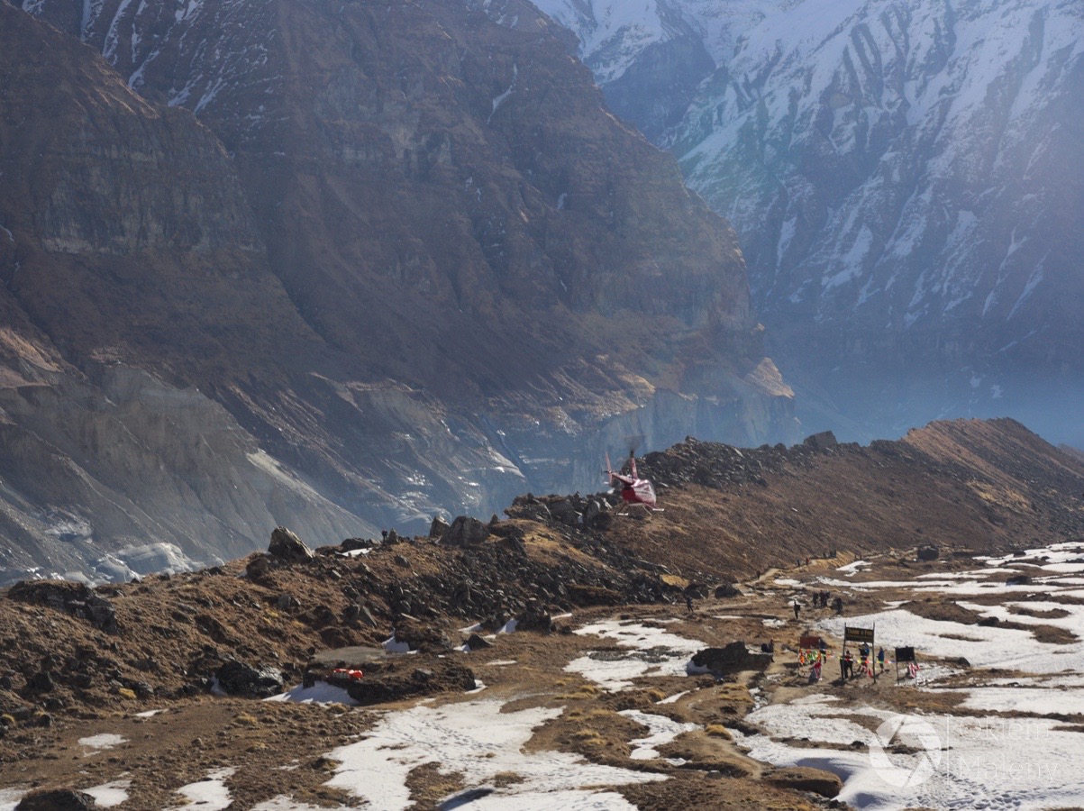 Pojęcia nie mam :)) Chociaż jak byłam w Annapurna Base Camp to helikoptery dość często przylatywały – i tak teraz zastanawiam się czy to te wycieczki czy jakieś niedyspozycje. Pewno po połowie. Osobiście bardzo mi się to nie podoba, bo taki helikopter huczy, buczy i niepotrzebnie zakłóca spokój w górach. Oby chetnych na wycieczki było jak najmniej.