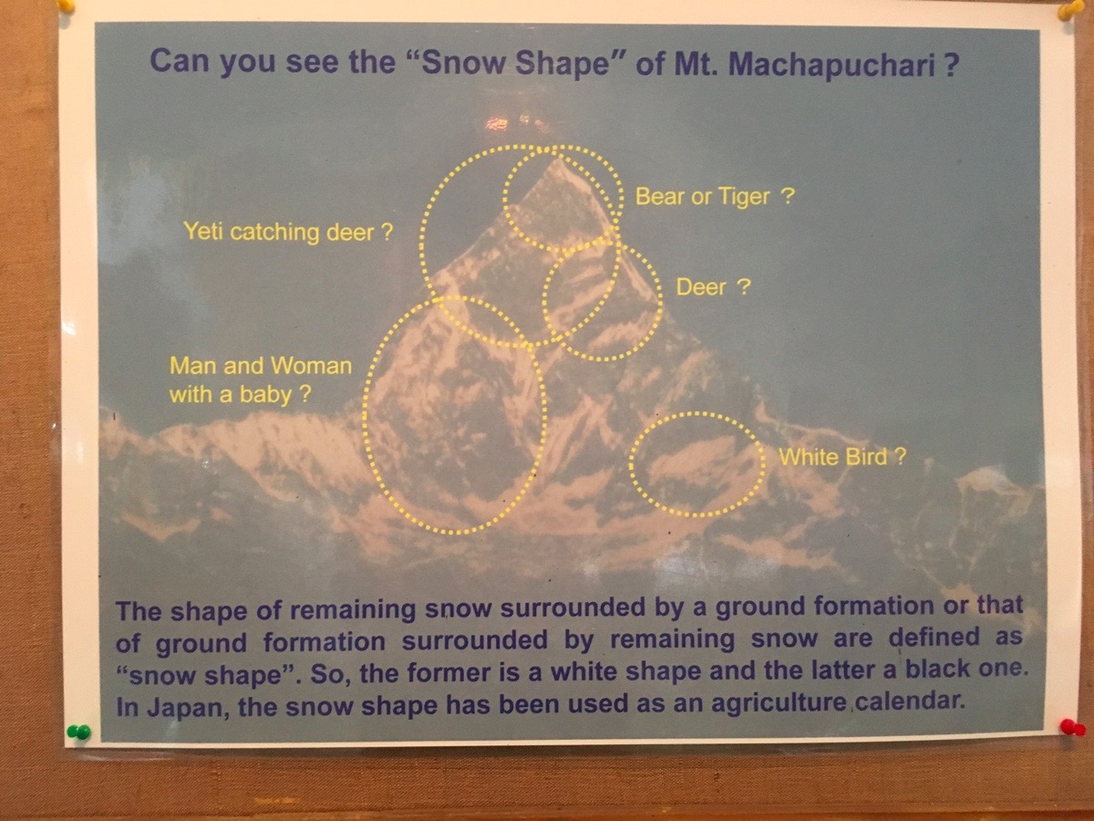 Góra widziana od strony Pokhary bardzo przypomina Matterhorn – stąd też często nazywana jest Matterhornem Pokhary lub Nepalu. Ma też inna nazwę – Fishtail – Rybi Ogon – podczas trekingu do Annapurna Base Camp można zaobserwować dwa wierzchołki Machhapuchhare, które naprawdę przypominają Rybi Ogon.
