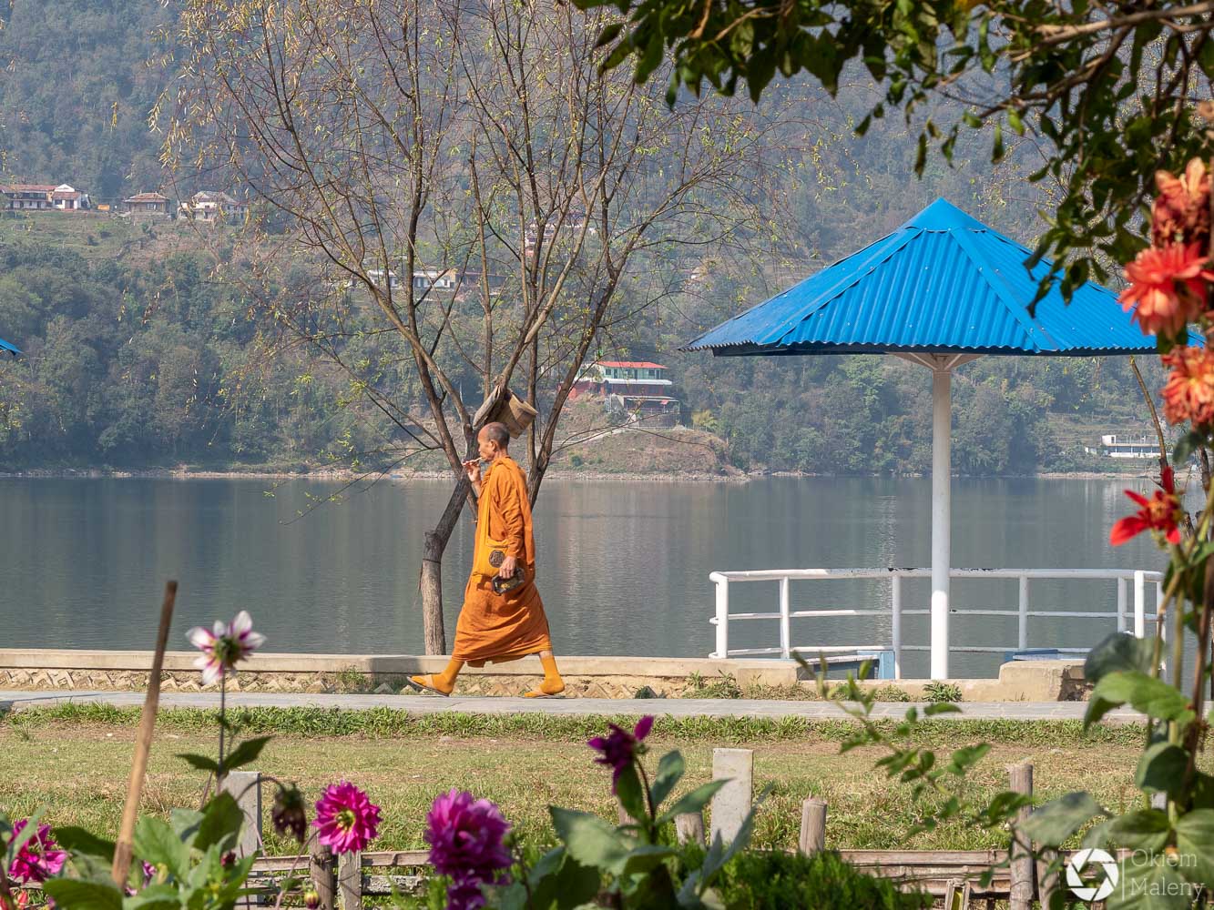 Niestety jazda po mieście do najprzyjemniejszych nie należy. Warto mieć z sobą chustę lub komin, którym ochroni się nos i usta przed całą masą pyłu i prochu. Droga wzdłuż jeziora jest utrudniona, bo w wielu miejscach są poustawiane obrotowe bramki. Ja miałam szczęście i gdy stanęłam jak sierota przed jedną z takich przeszkód przechodzący Nepalczyk zaoferował przeniesienie roweru nad bramką.