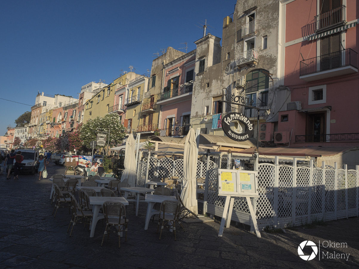 Marina di Corricella to tak naprawdę jedna ulica wzdłuż portu pełna restauracji, sieci rybackich, kotów i barw. Co ciekawe w jednym z przewodników zdjęcie tej uliczki jest wizytówką całego regionu Kampanii, a w treści ani słowa o wyspie.