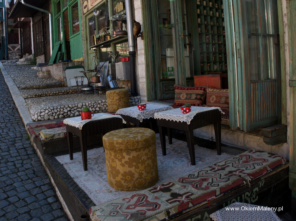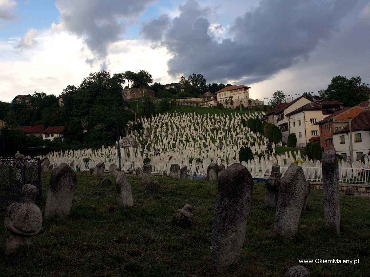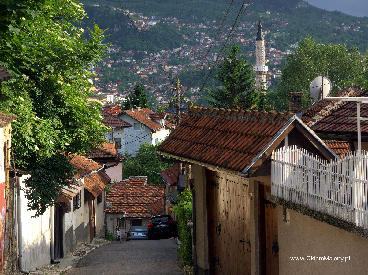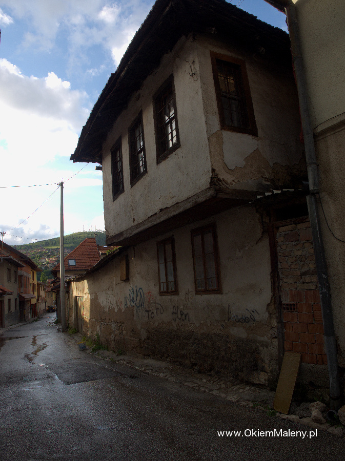 Gdy tylko deszcz przestał lać wbiłam w mapę pinezkę z lokalizacja knajpki i wyruszyłam na spacer. Z każdym krokiem Sarajewo robiło na mnie przyjemniejsze wrażenie. Przeszłam Baščaršije (targ miejski w obrębie starego miasta), zobaczyłam na własne oczy Sebilj (charakterystyczna drewniana fontanna w Sarajewie – o tym następnym razem), pokręciłam się chwilkę po okolicy i wyruszyłam, mniej więcej, w kierunku Kibe Mahala. Najpierw przeszłam przez klimatyczną uliczkę Kovači gdzie tak jak pisano we wszystkich źródłach słychać rytmiczne uderzania młoteczków i to tam powstają dżezwy (tygielki do parzenia kawy), małe czasze, mosiężne tacki, magnesy. Jedna z bardziej klimatycznych uliczek. Tuż nad nią pojawia się muzułmański cmentarz, a nad nim Žuta Tabija i zabytkowa dzielnica Vratnik. Plan na dzień następny.