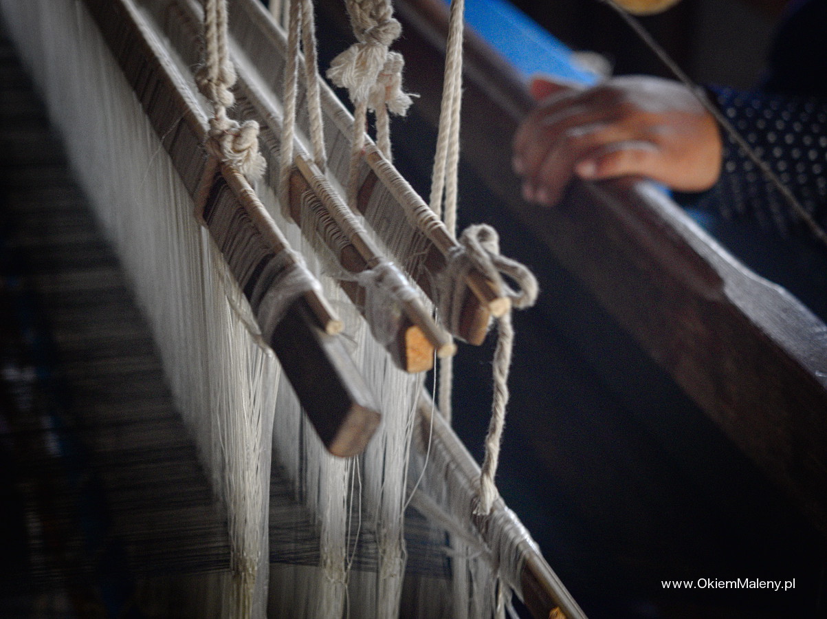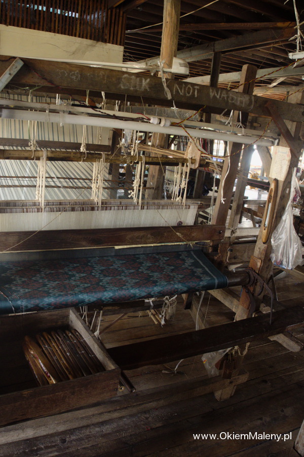 Co było dalej? Zwiedzanie manufaktur. Samo w sobie jest ciekawe. Pokazany proces tkania, pozyskiwania nici z lotosu. Swoją drogą lotosowe tkaniny pioruńsko drogie – szaliczek około 100$.
